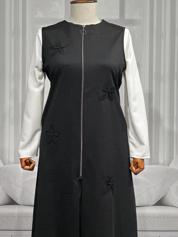 BÜZGÜ DETAYLI İNCİLİ SPOR FERACE - SİYAH - (Asorti: M-XXL)