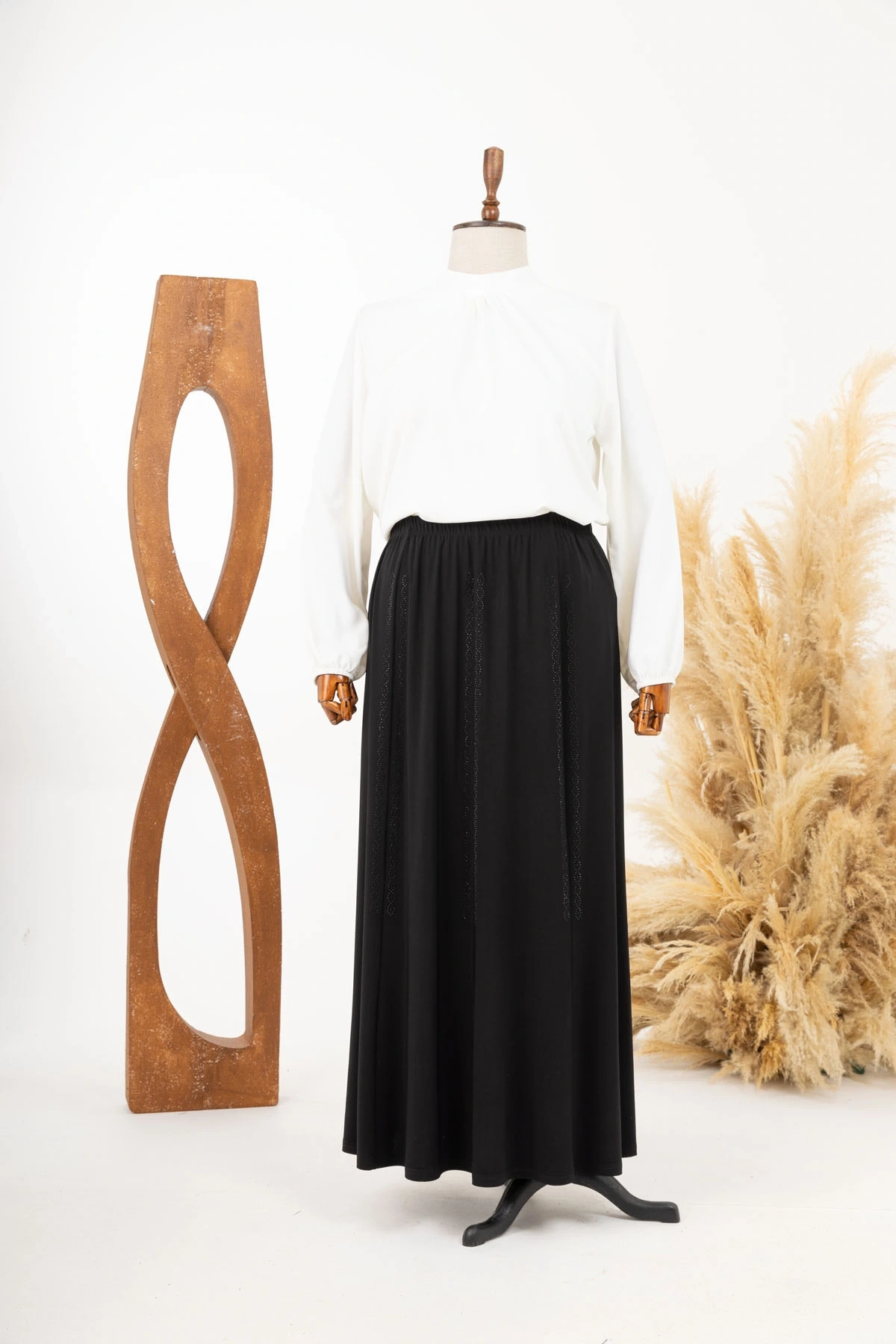 1067 Taşlı Etek - Siyah - (asorti: 4-6)