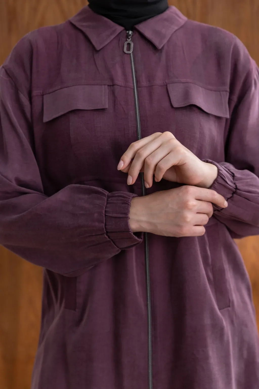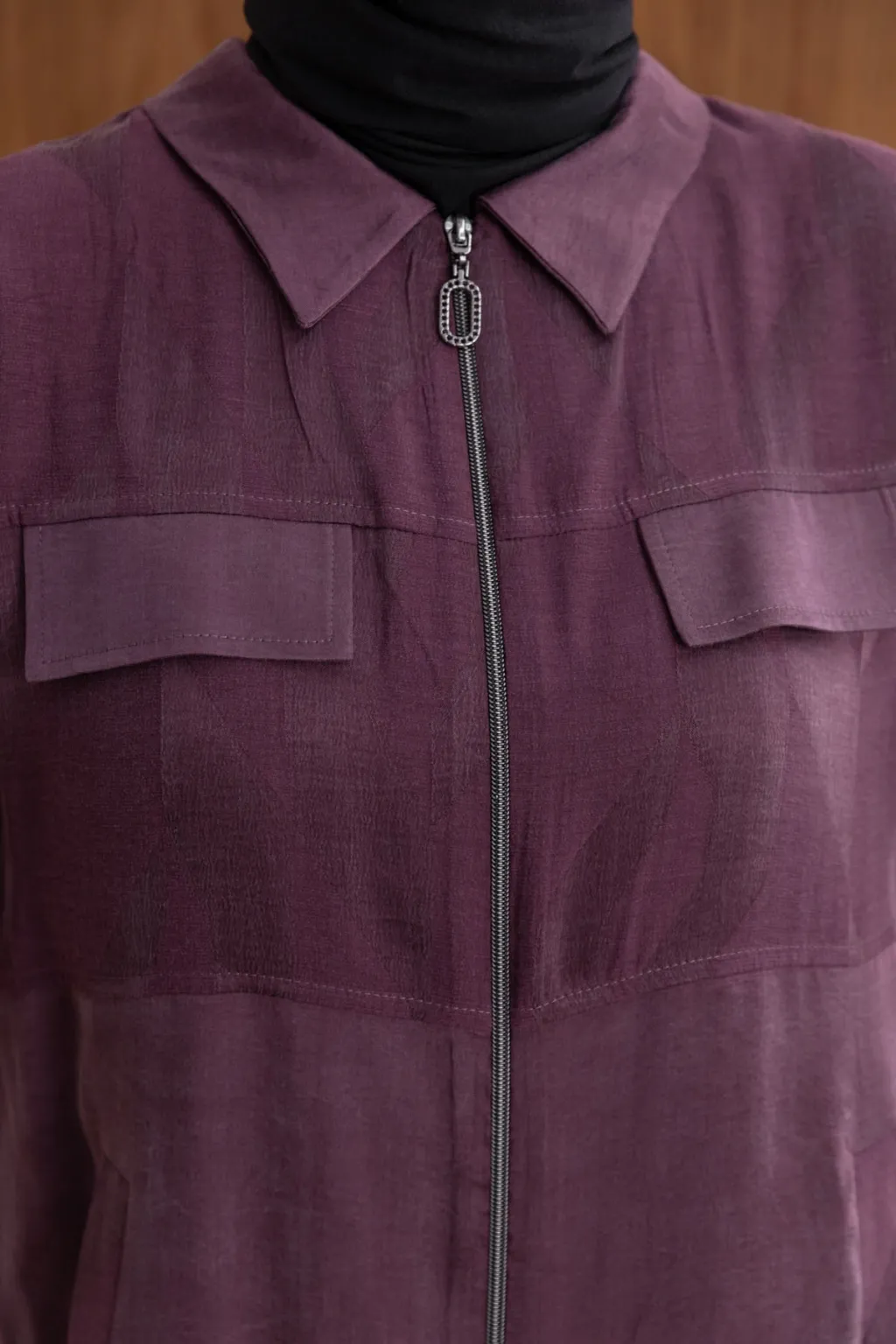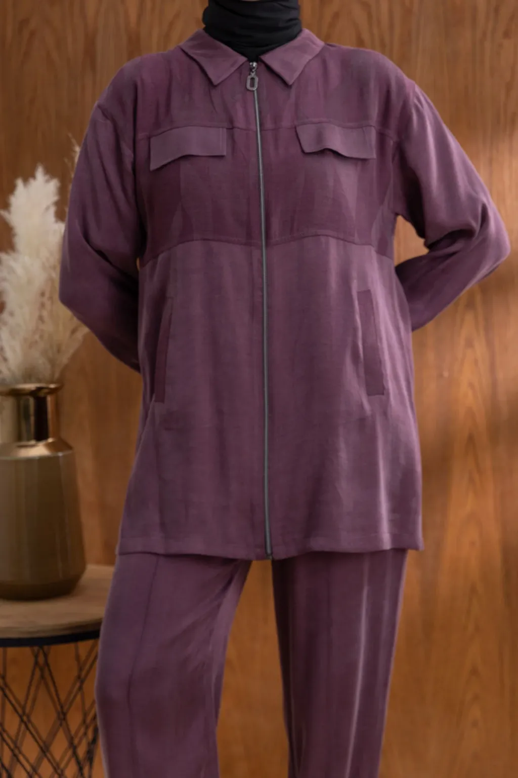 Cep Kapaklı Önü Fermuarlı Pantolonlu Takım - Mürdüm - (asorti: M-xxl)