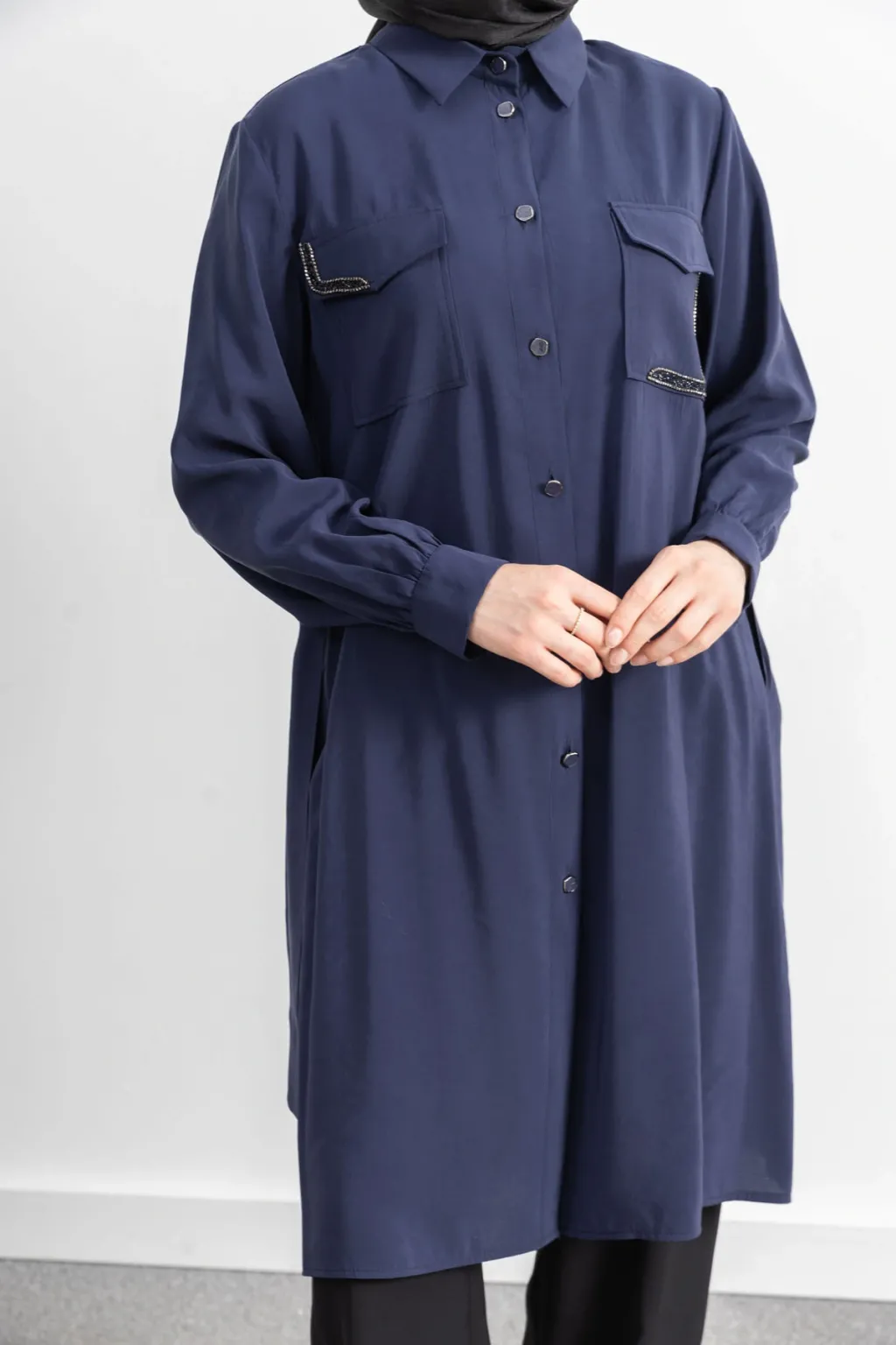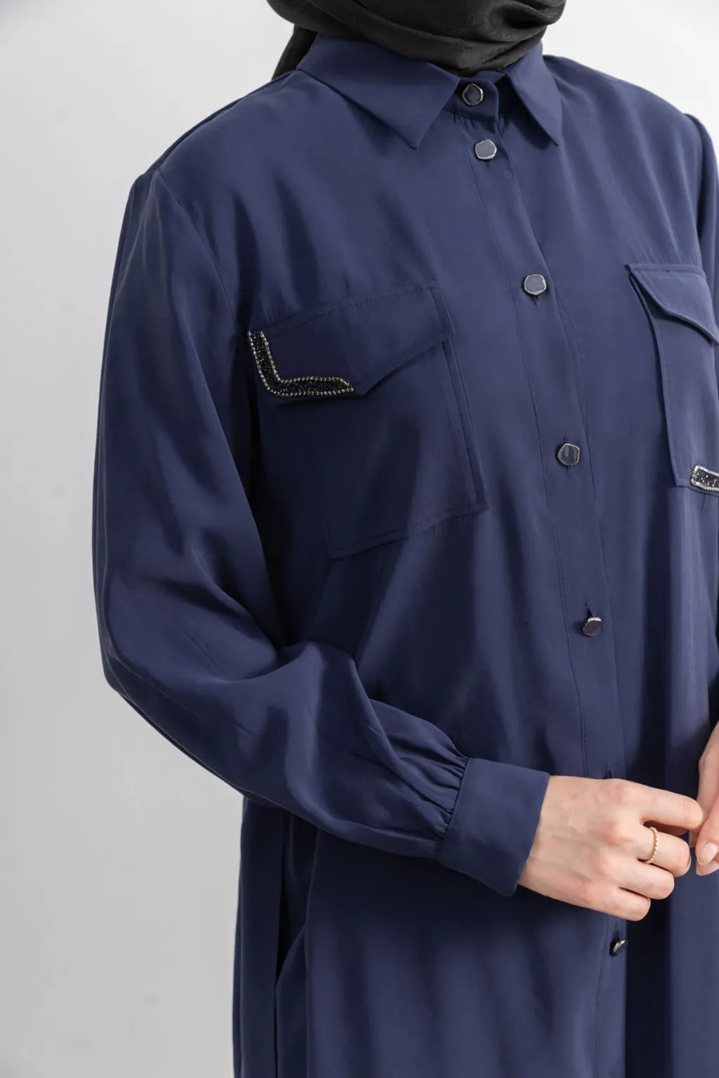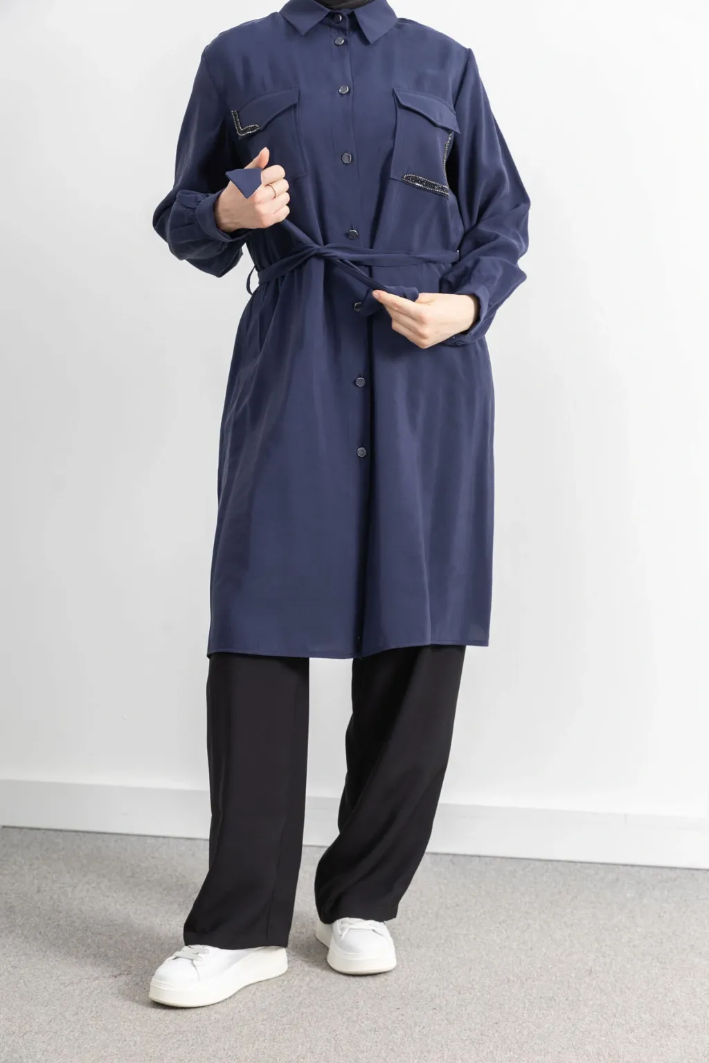 Cepleri Taş Detaylı Kuşaklı Araboy - Lacivert - (asorti: 46-52)