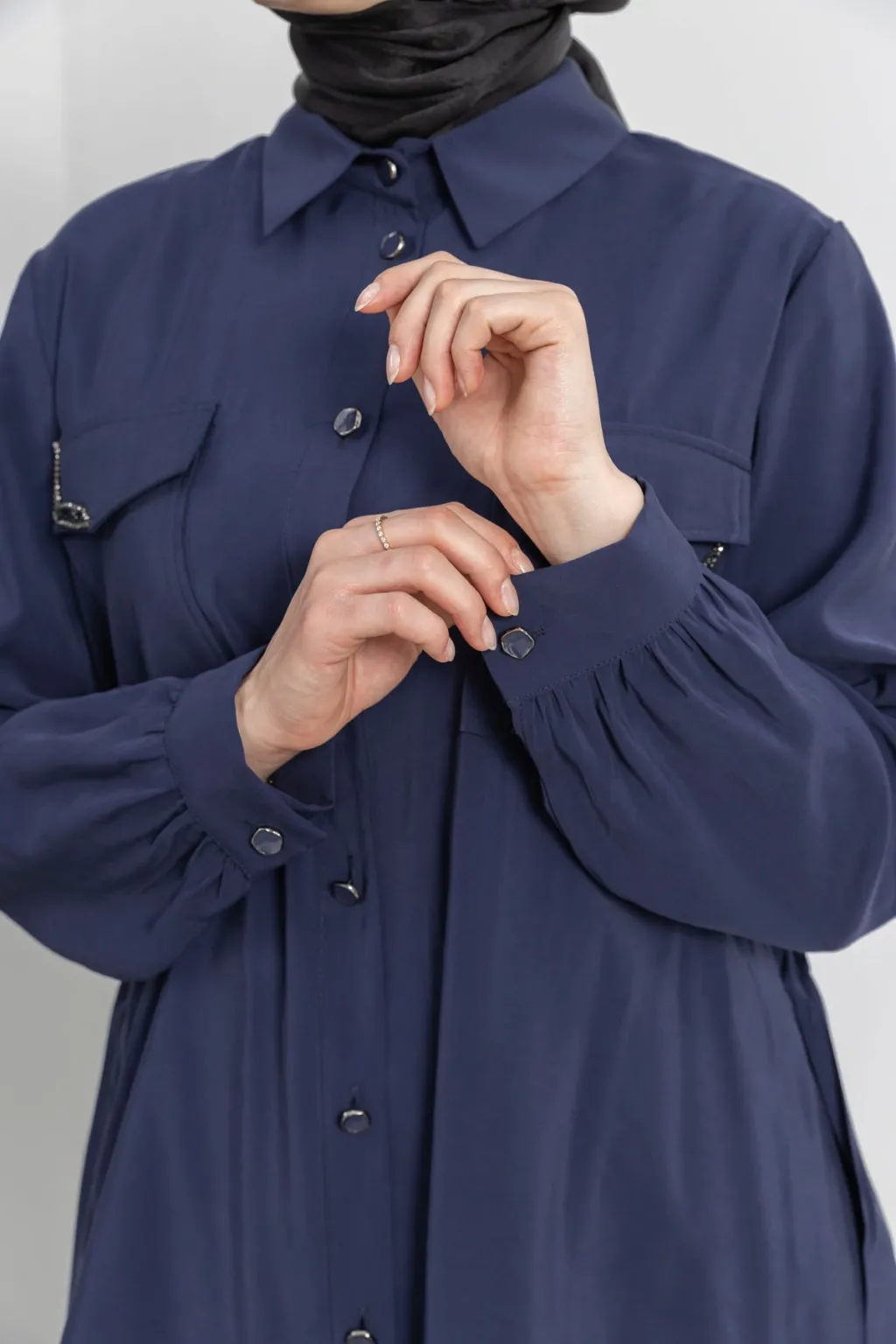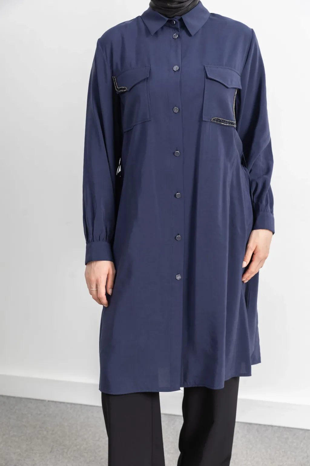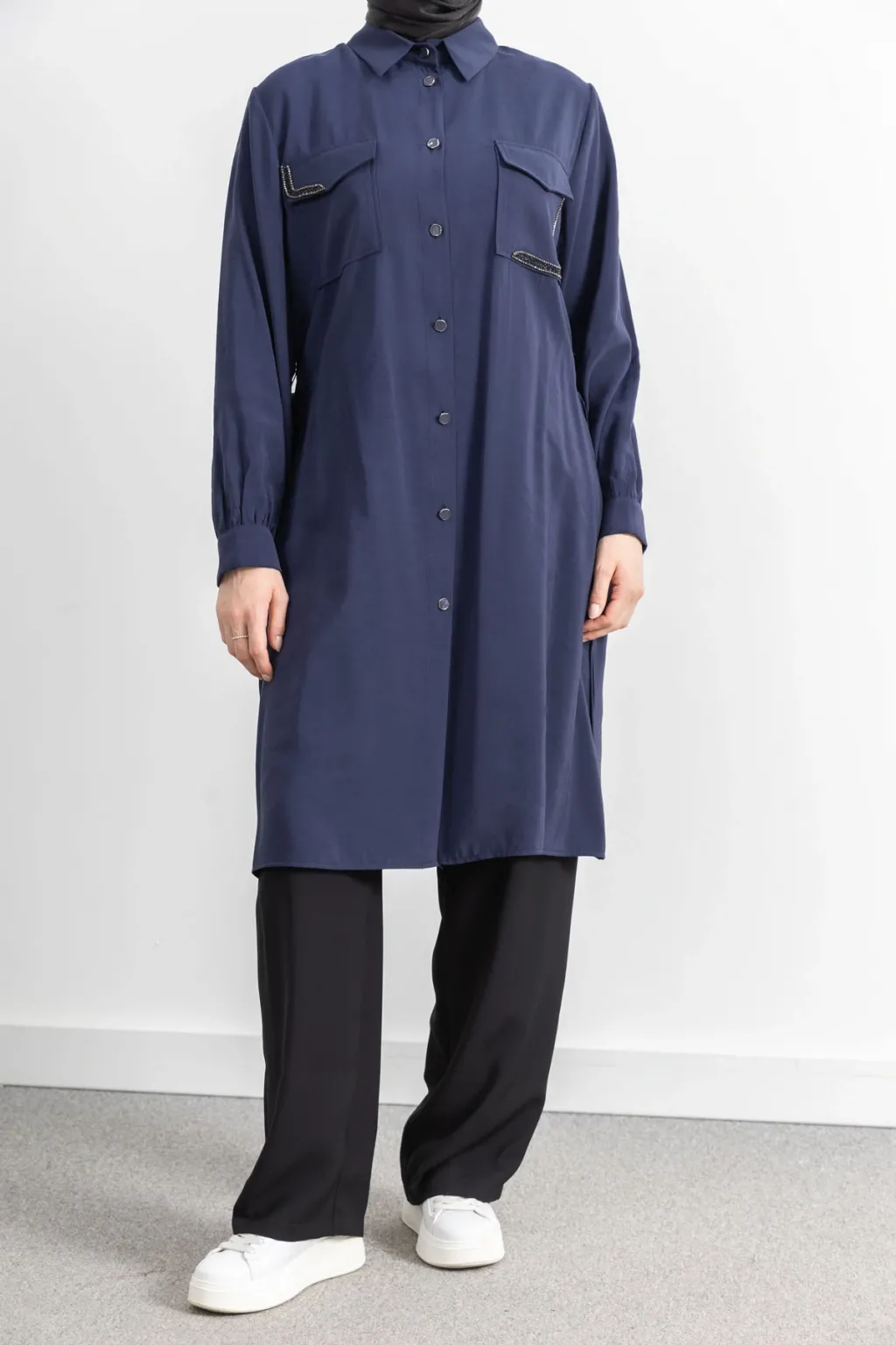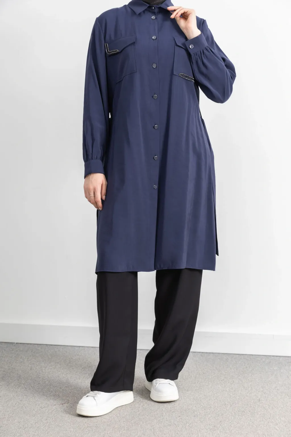 Cepleri Taş Detaylı Kuşaklı Araboy - Lacivert - (asorti: 46-52)