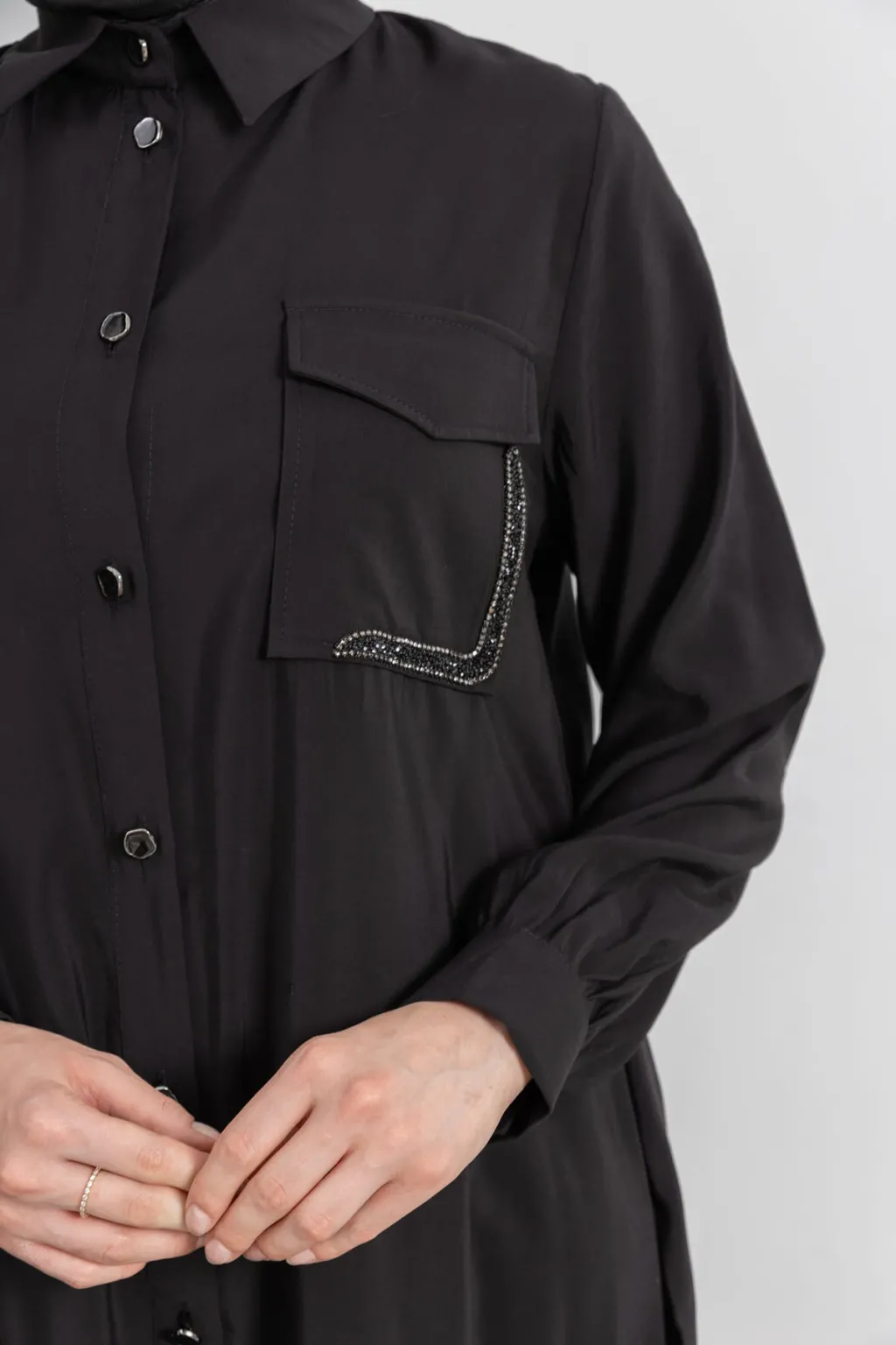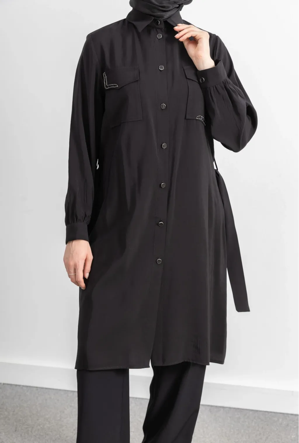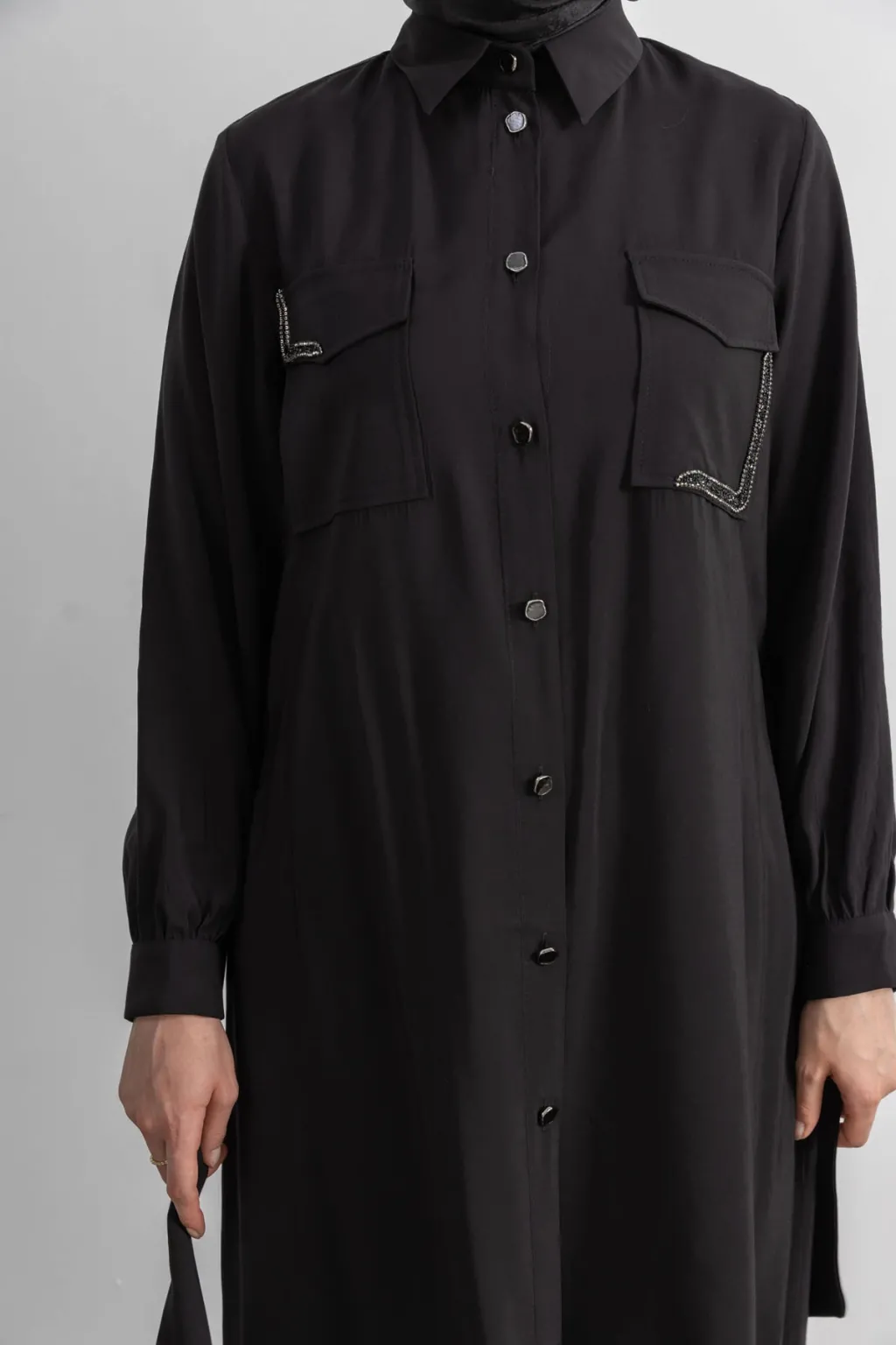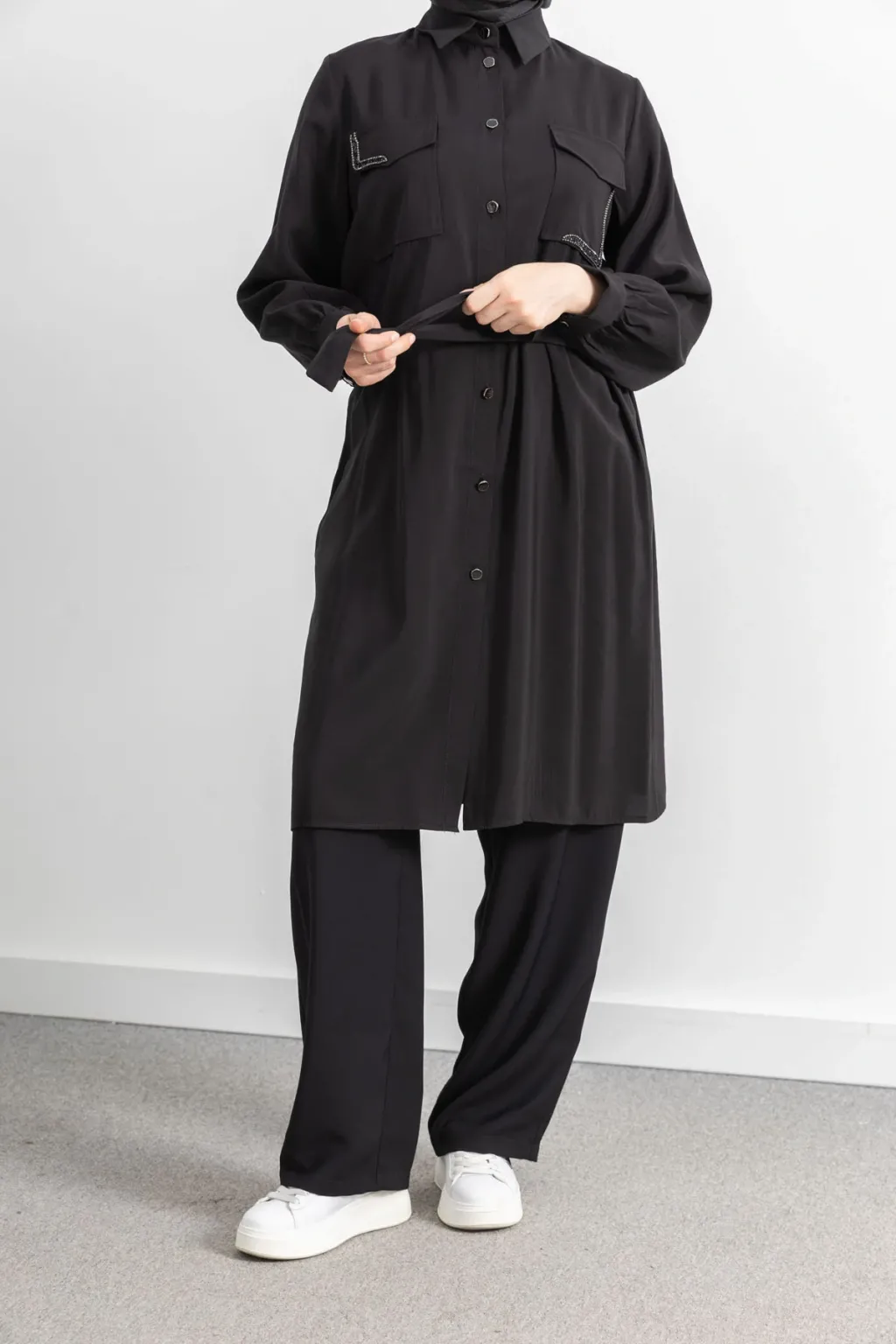 Cepleri Taş Detaylı Kuşaklı Araboy - Siyah - (asorti: 46-52)