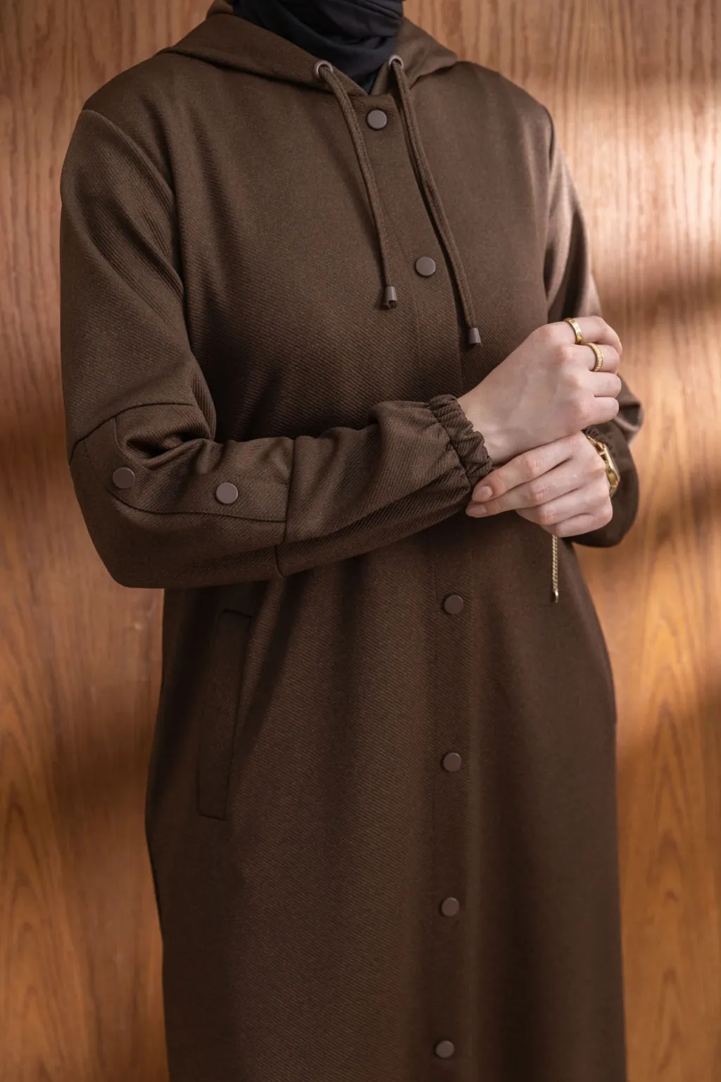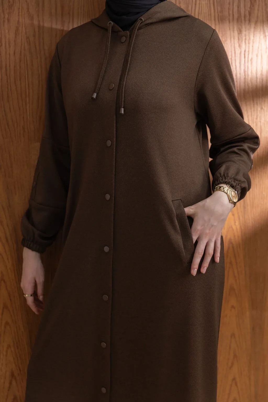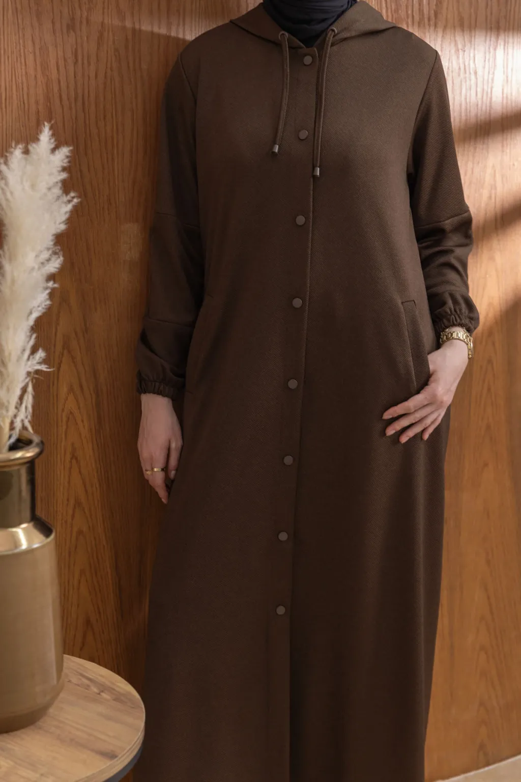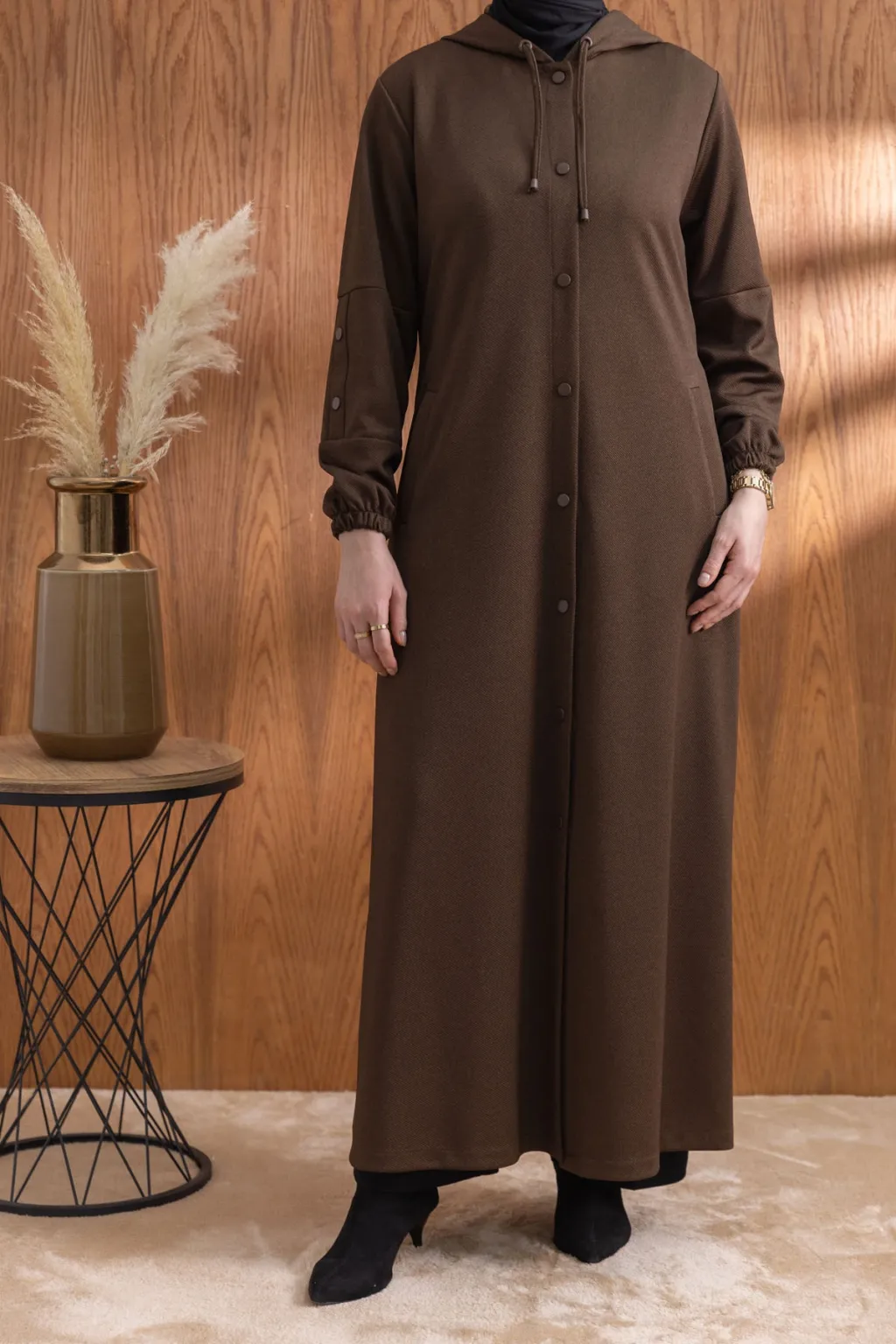 Çıtçıtlı Kapüşonlu Ferace - Kahve - (asorti: 46-52)