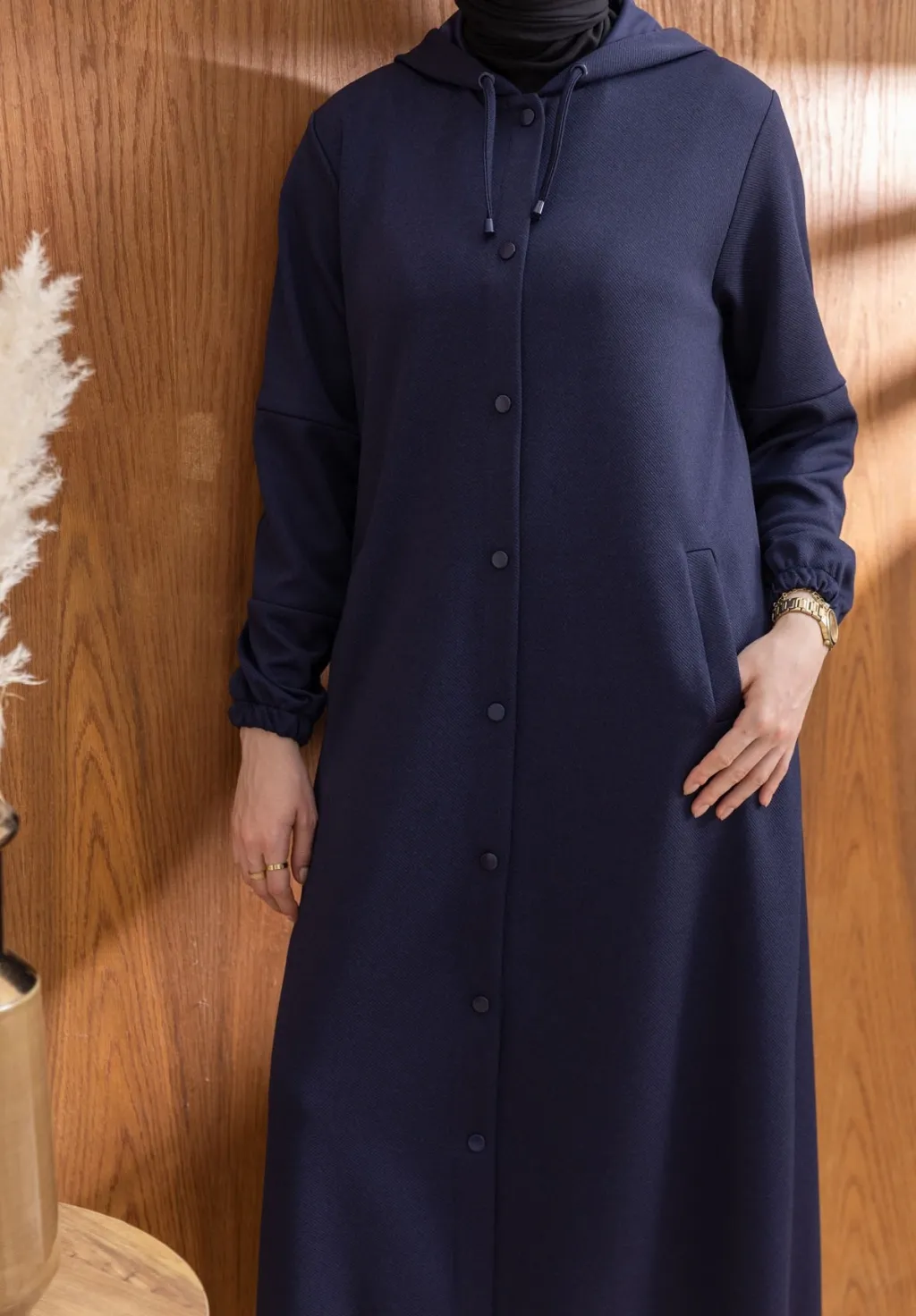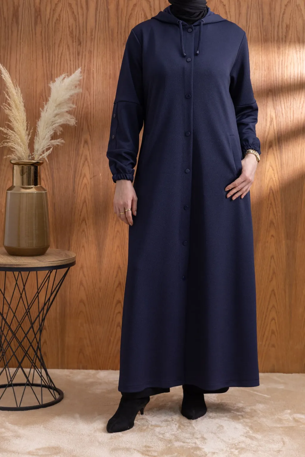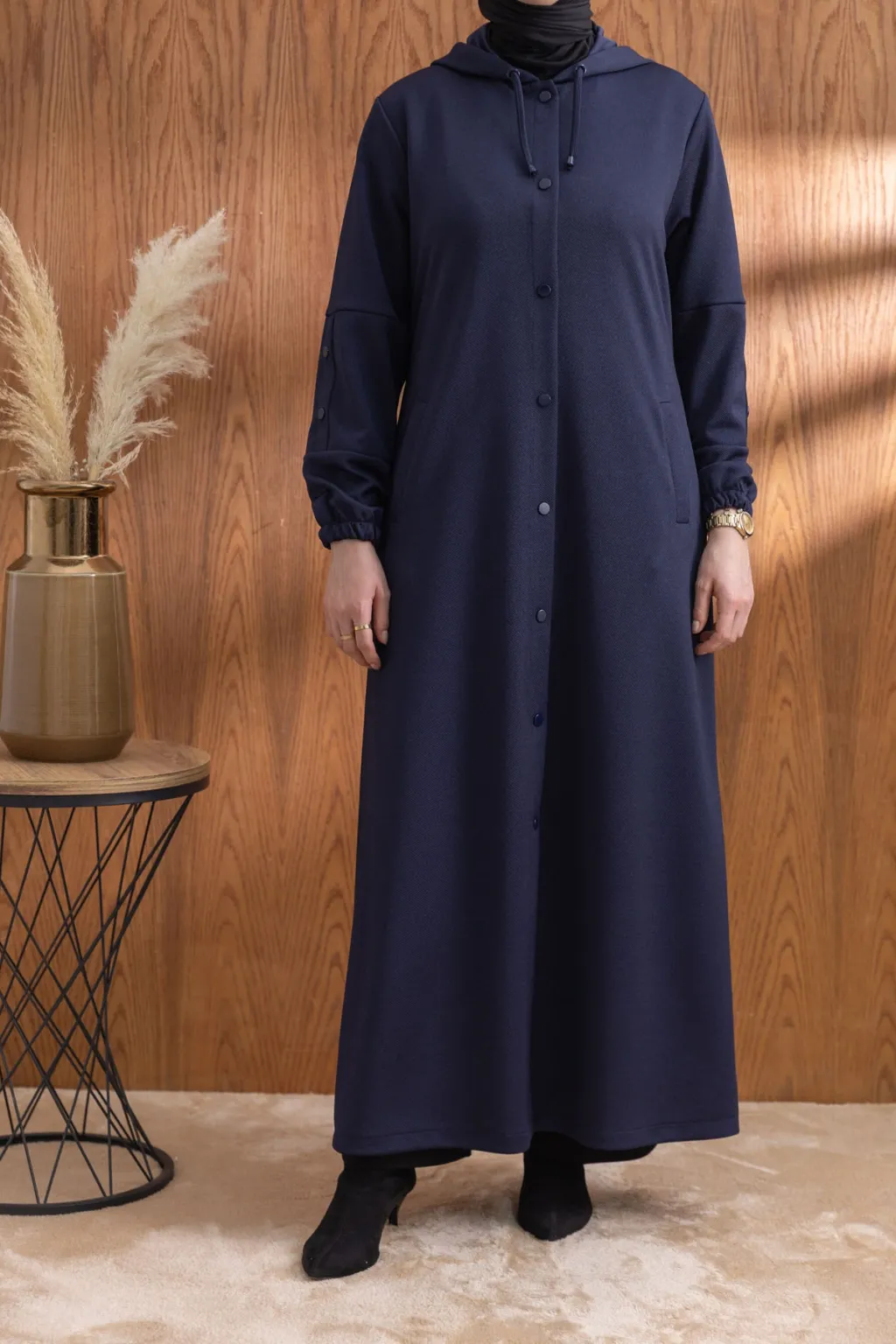 Çıtçıtlı Kapüşonlu Ferace - Lacivert - (asorti: 46-52)