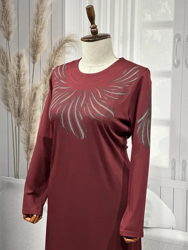 DEMET ELBİSE - BORDO - R10594 - (Asorti: 4-7)