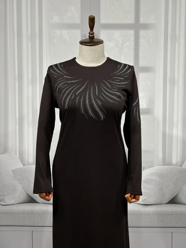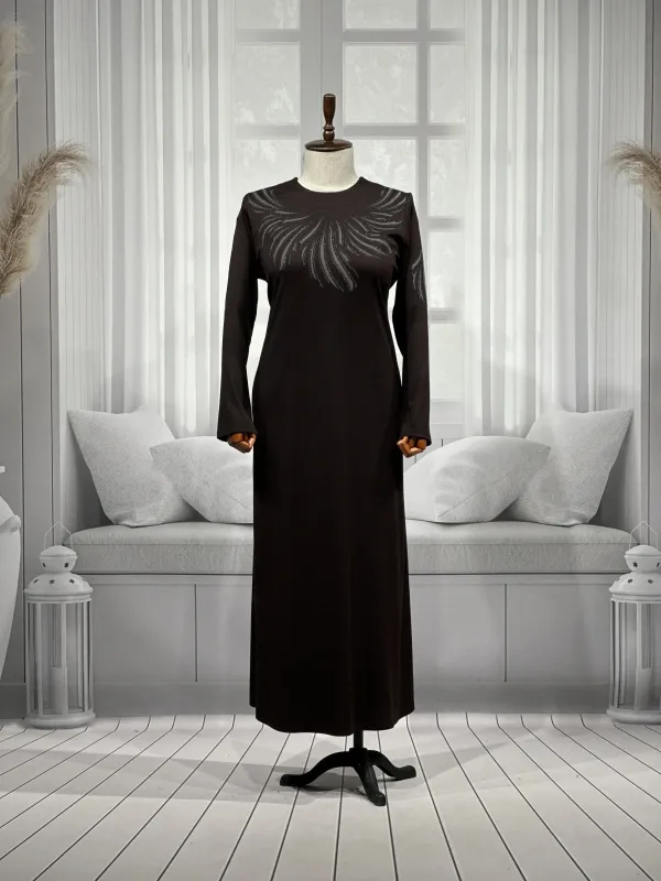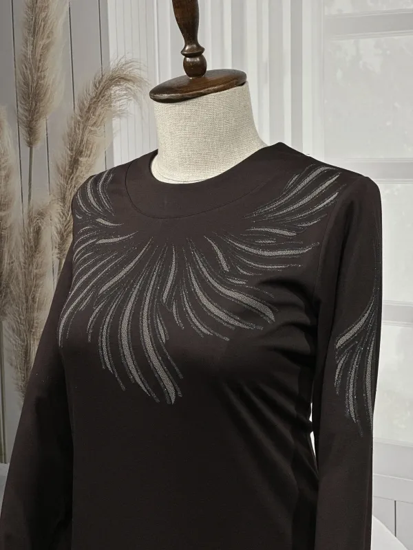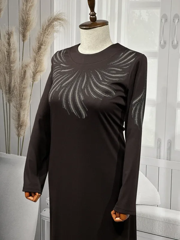 HESNA 8506 BASKILI ELBİSE - KAHVE - (Asorti: 4-6)