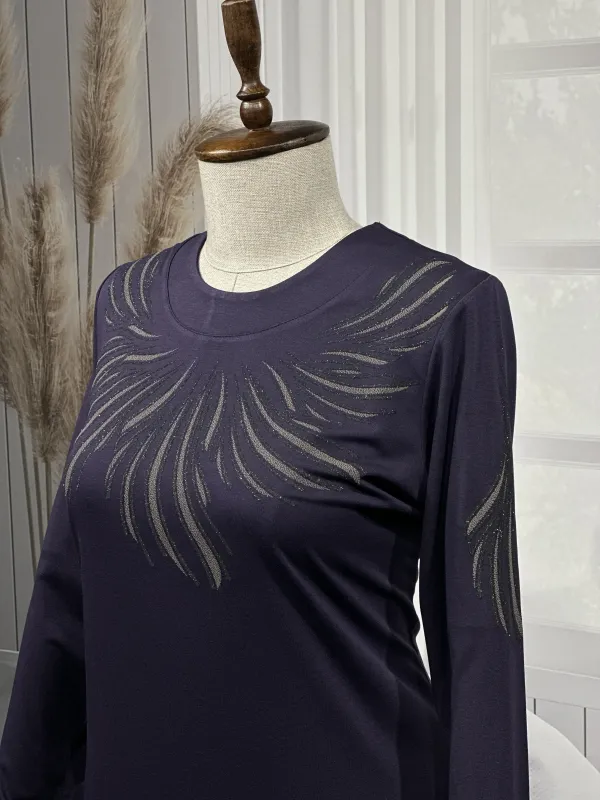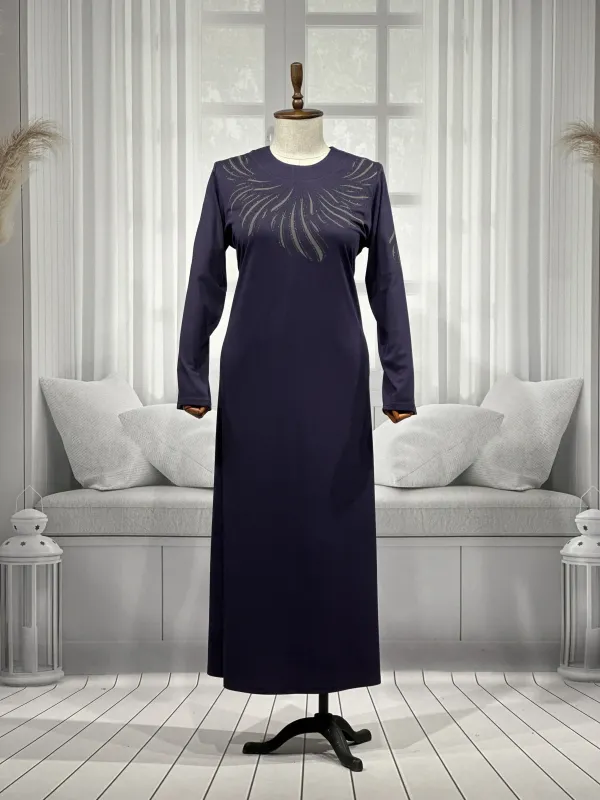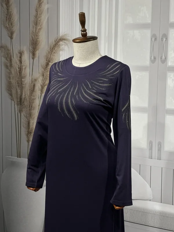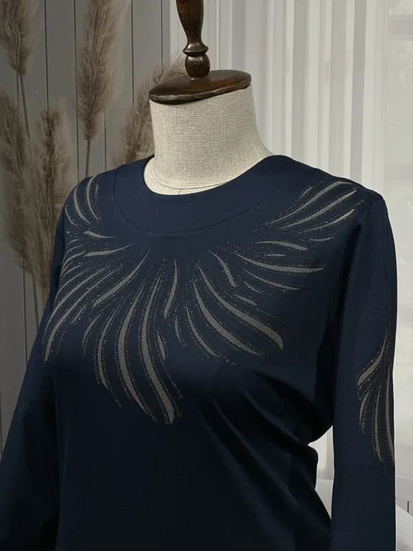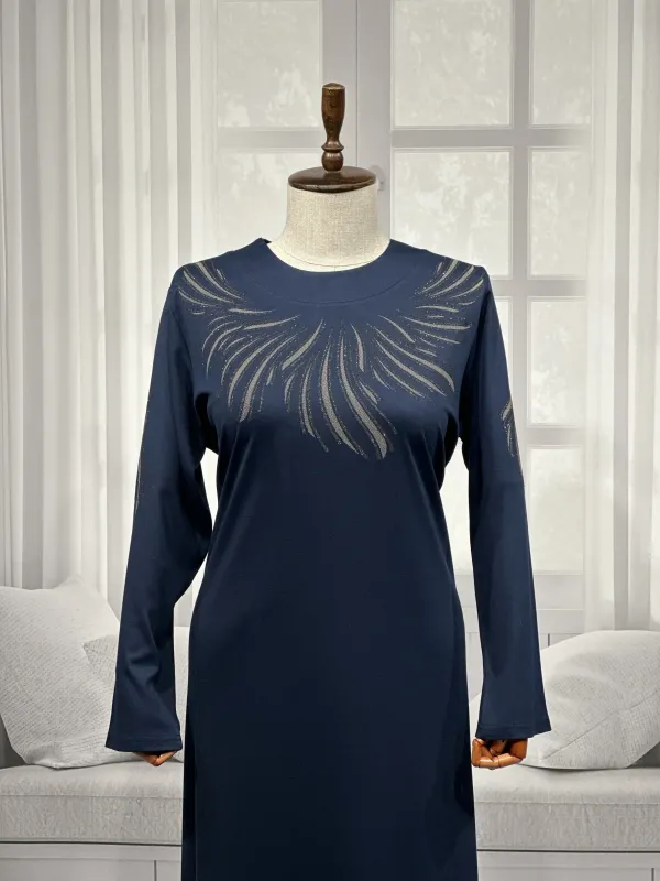 HESNA 8506 BASKILI ELBİSE - LACİVERT - (Asorti: 4-6)