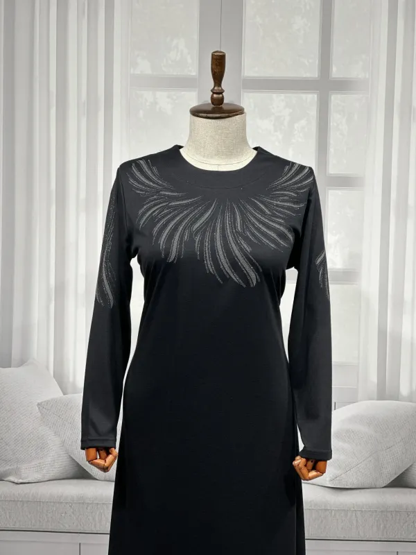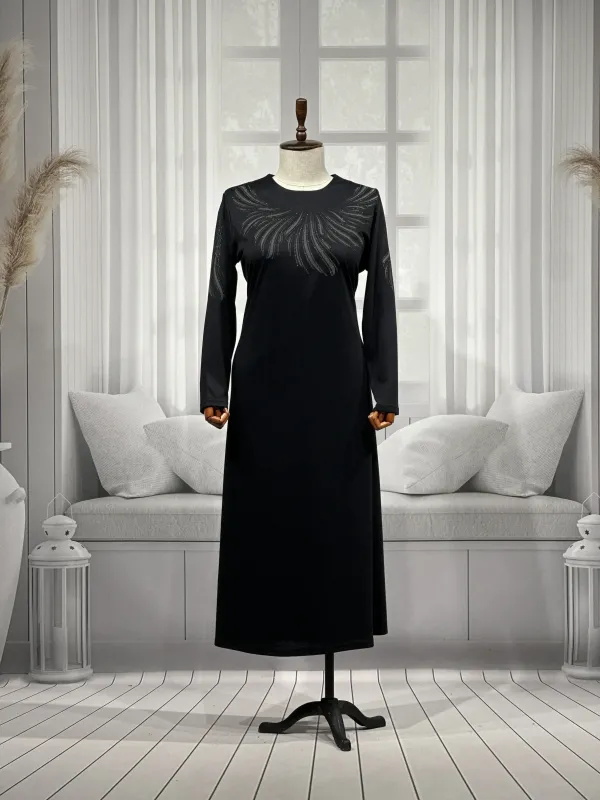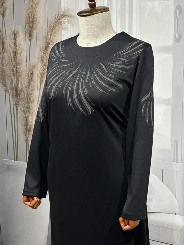 HESNA 8506 BASKILI ELBİSE - SİYAH - (Asorti: 4-6)