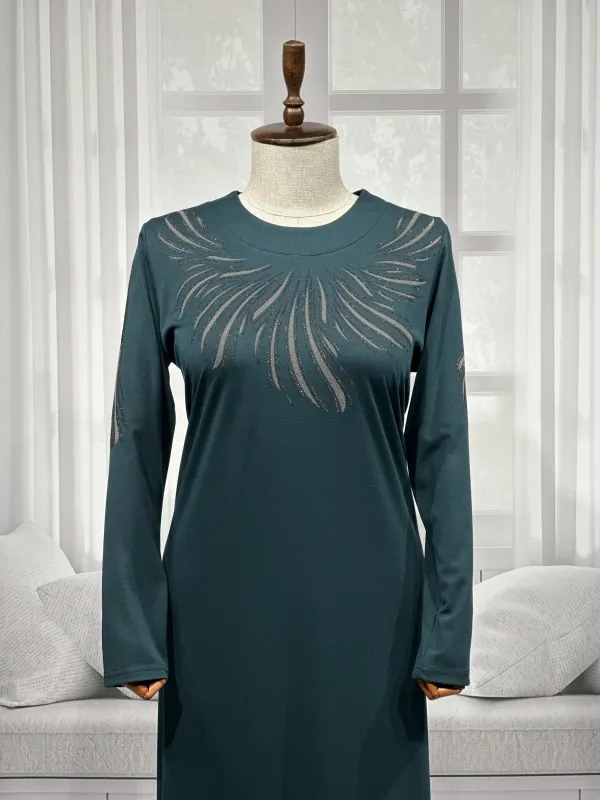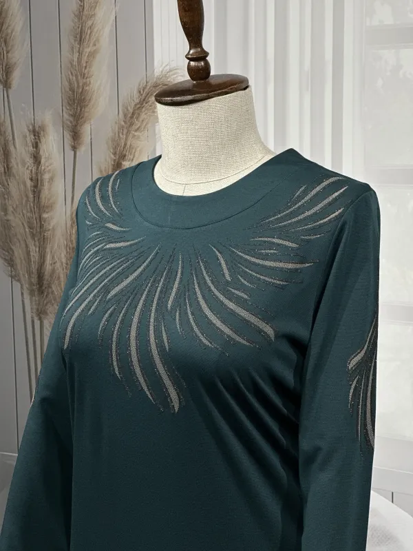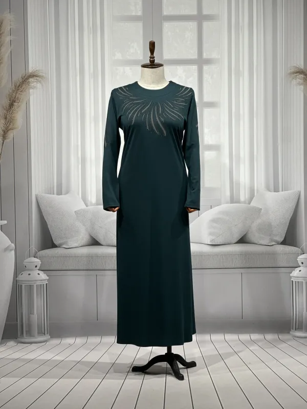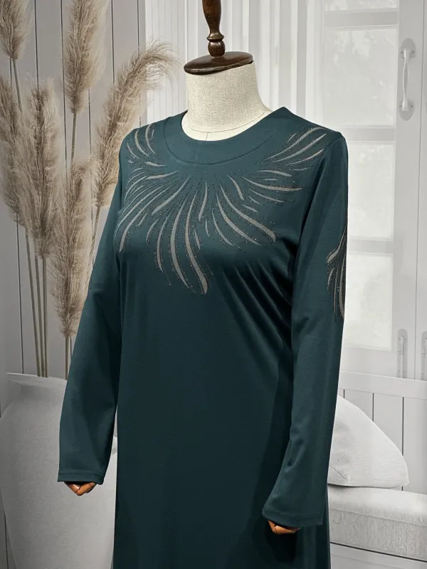 HESNA 8506 BASKILI ELBİSE - YEŞİL - (Asorti: 4-6)