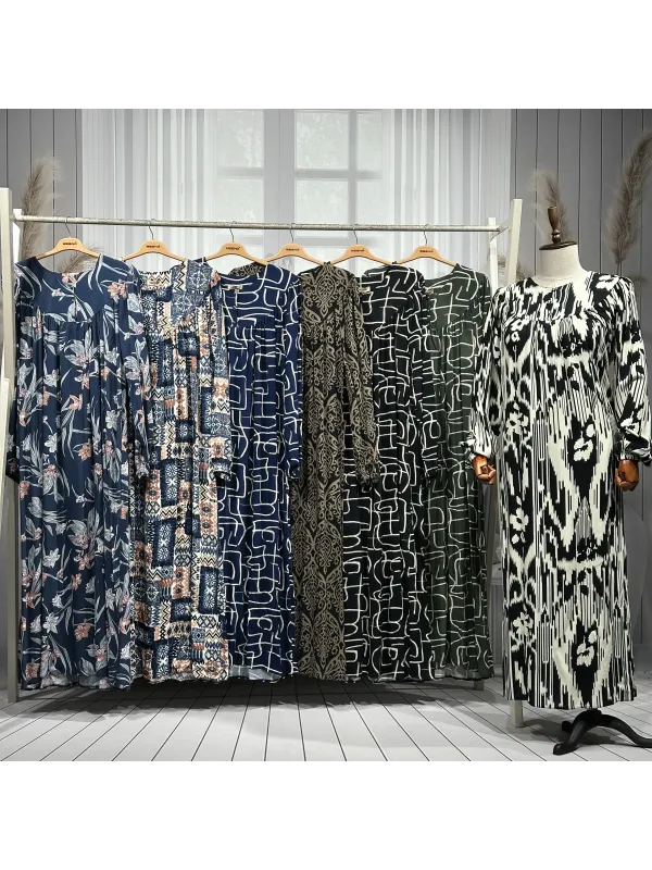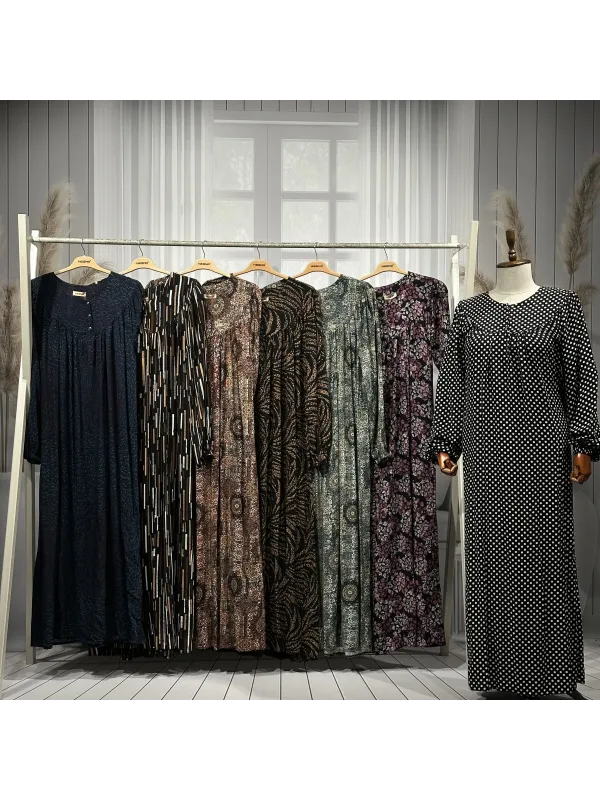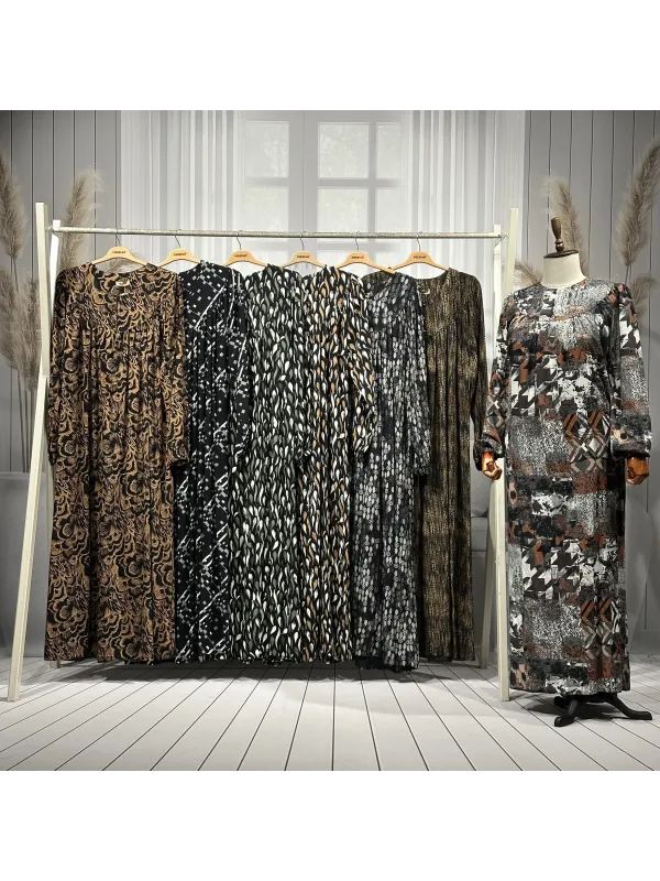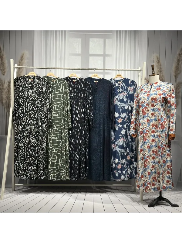 HESNA 8227 ROBALI ELBİSE - KARIŞIK DESENLER - 01-KARIŞIK DESEN - (Asorti: 3-5-7)