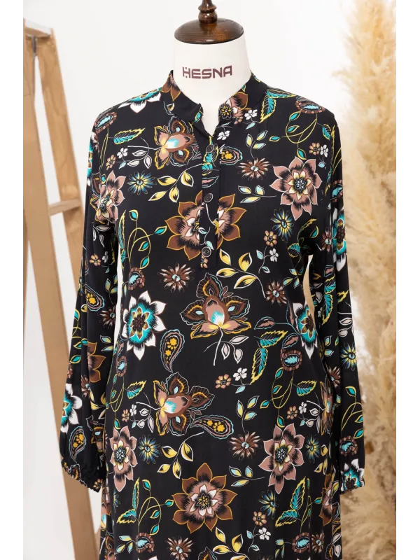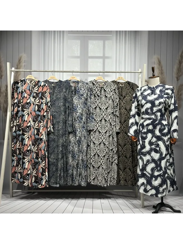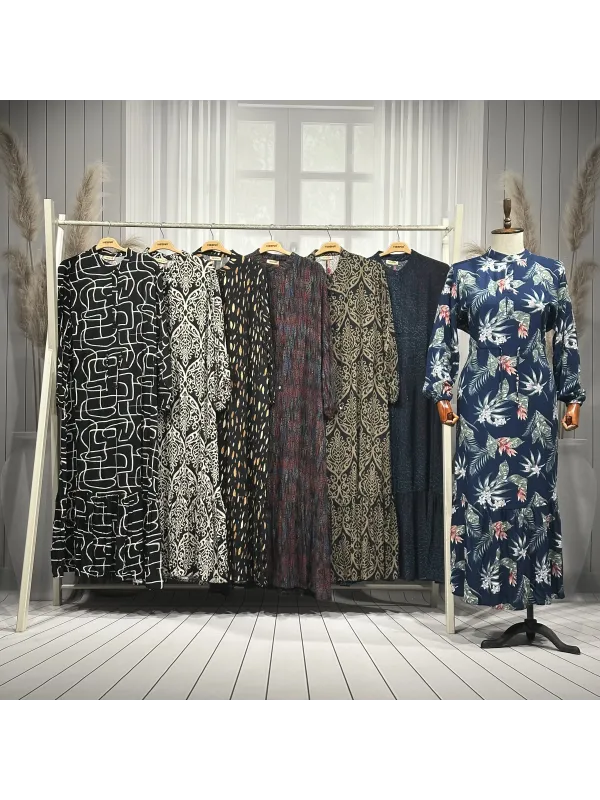 HESNA 8203 VİSKON ELBİSE - KARIŞIK DESENLER - 01-KARIŞIK DESEN - (Asorti: 3-6)
