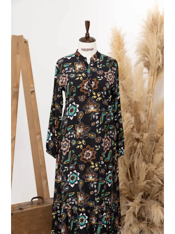 CEMİLE ELBİSE - SİYAH - 01-KARIŞIK DESEN - (Asorti: 4-6)