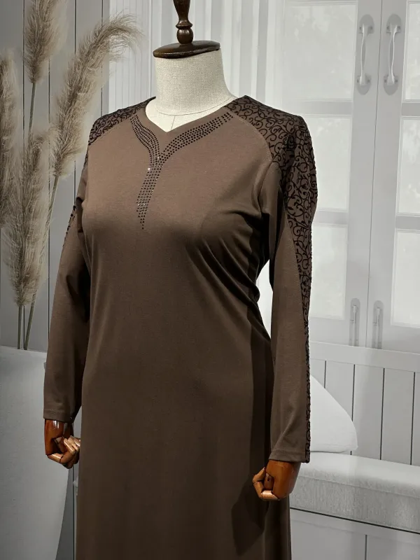 HESNA 8400 ELBİSE - KAHVE - (Asorti: 4-7)