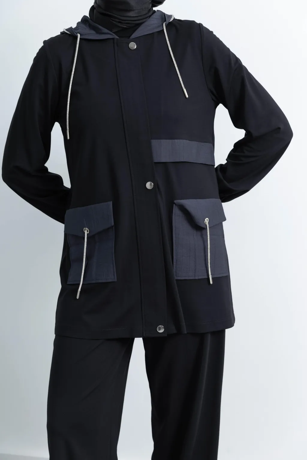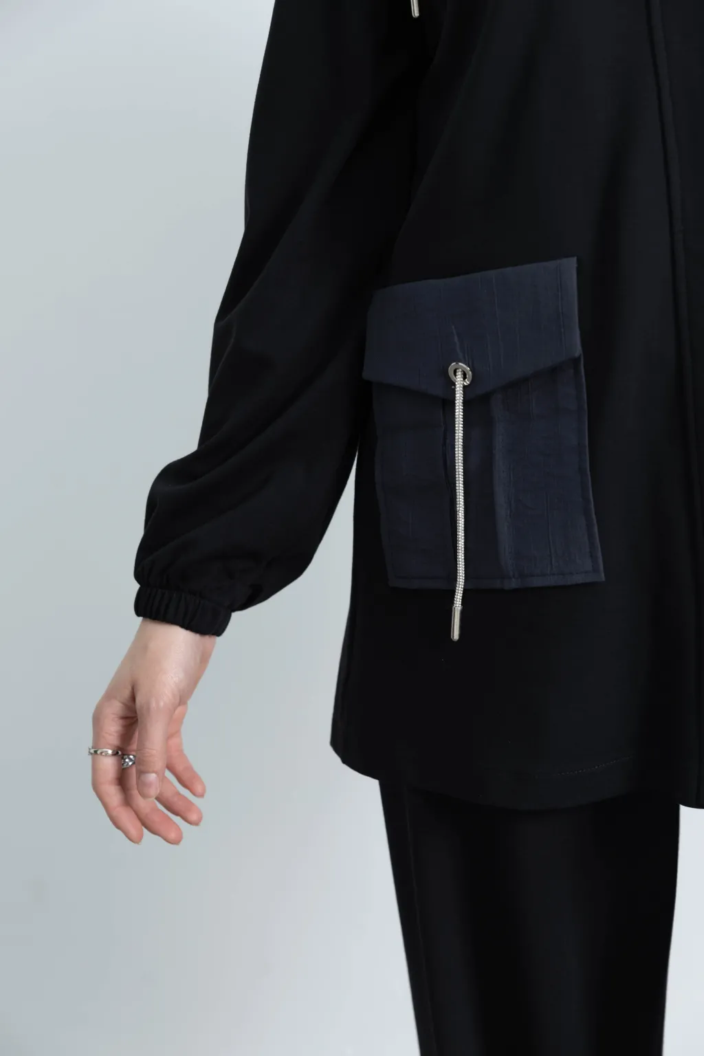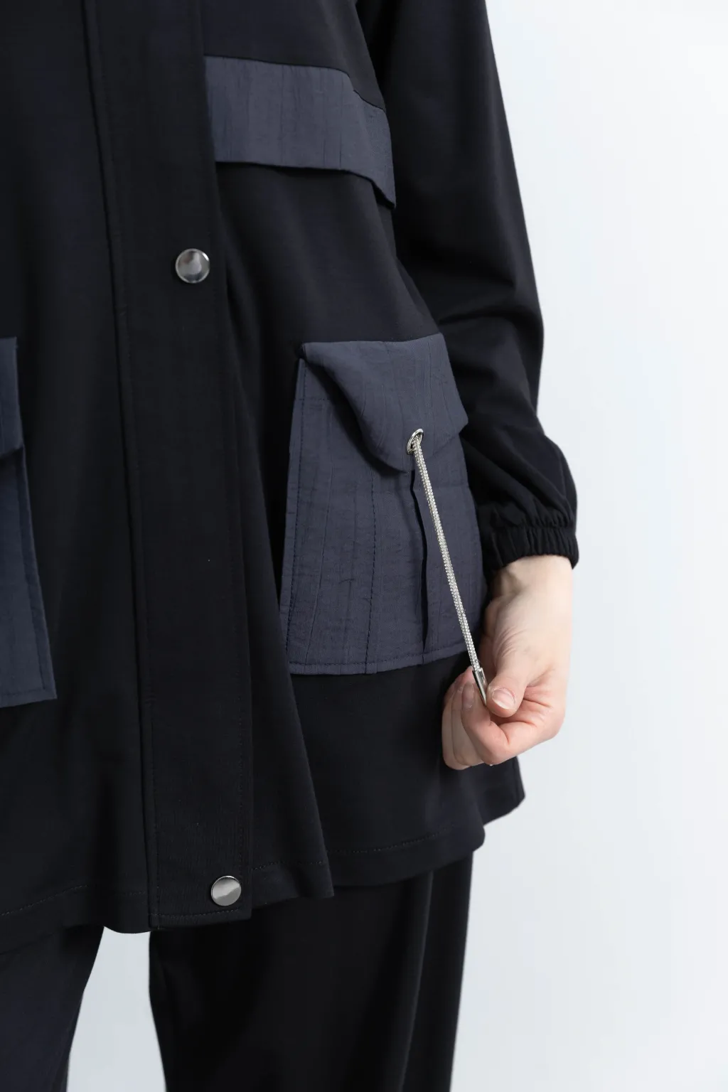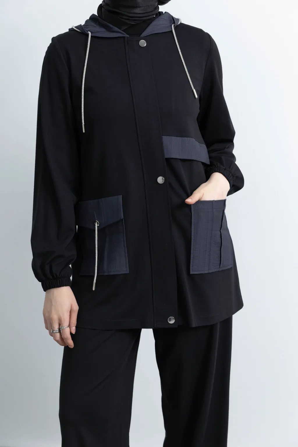 Letafet Kapüşonlu Düğme Detaylı Ceketli Pantolonlu Takım - SİYAH - (Asorti: M-XXL)