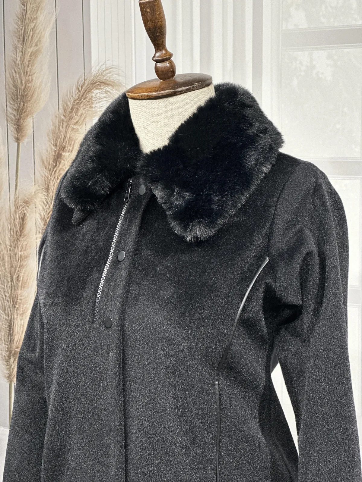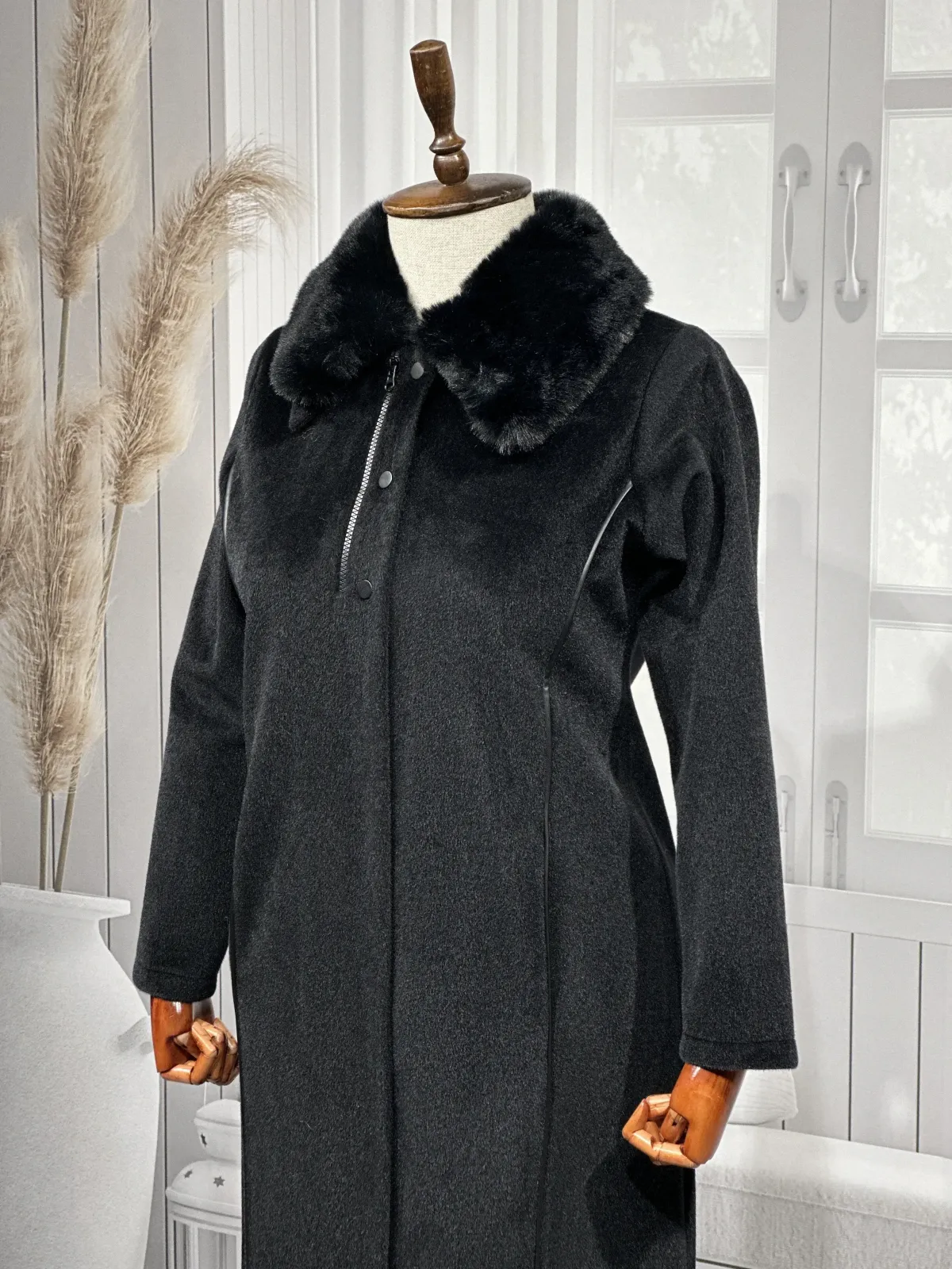 Hesna 2203 Nakışlı Pardesü - Siyah - (asorti: 4-7)