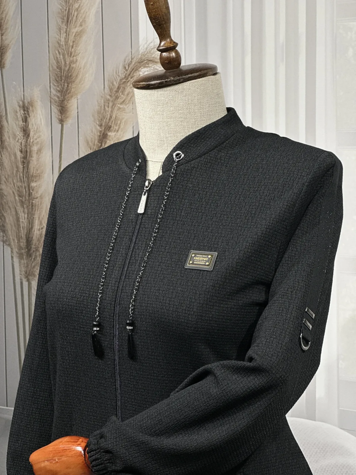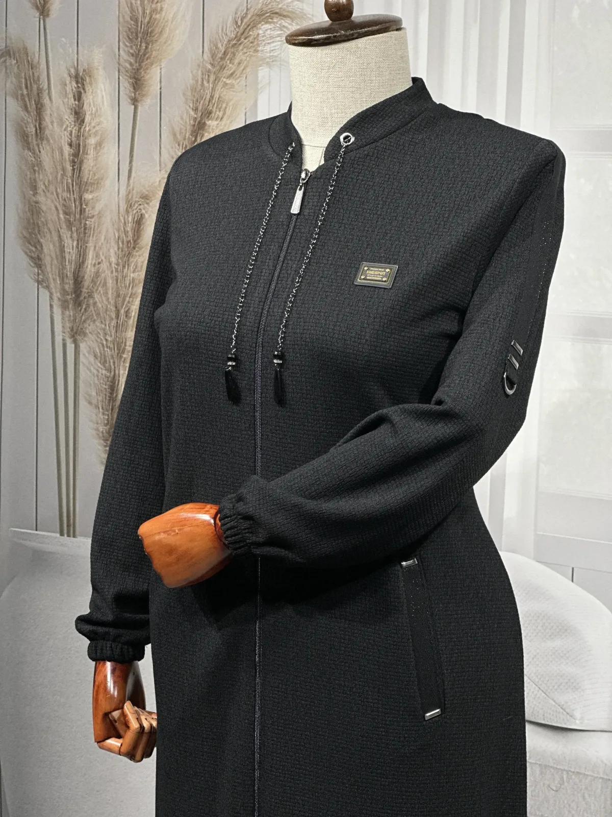 Hesna 2203 Nakışlı Pardesü - Siyah - (asorti: 4-7)