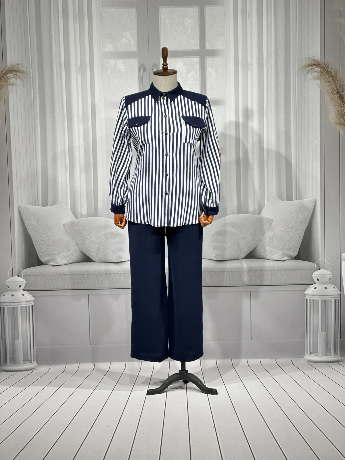 Hesna 4615 Çizgili Takım - Lacivert - (asorti: 46-52)