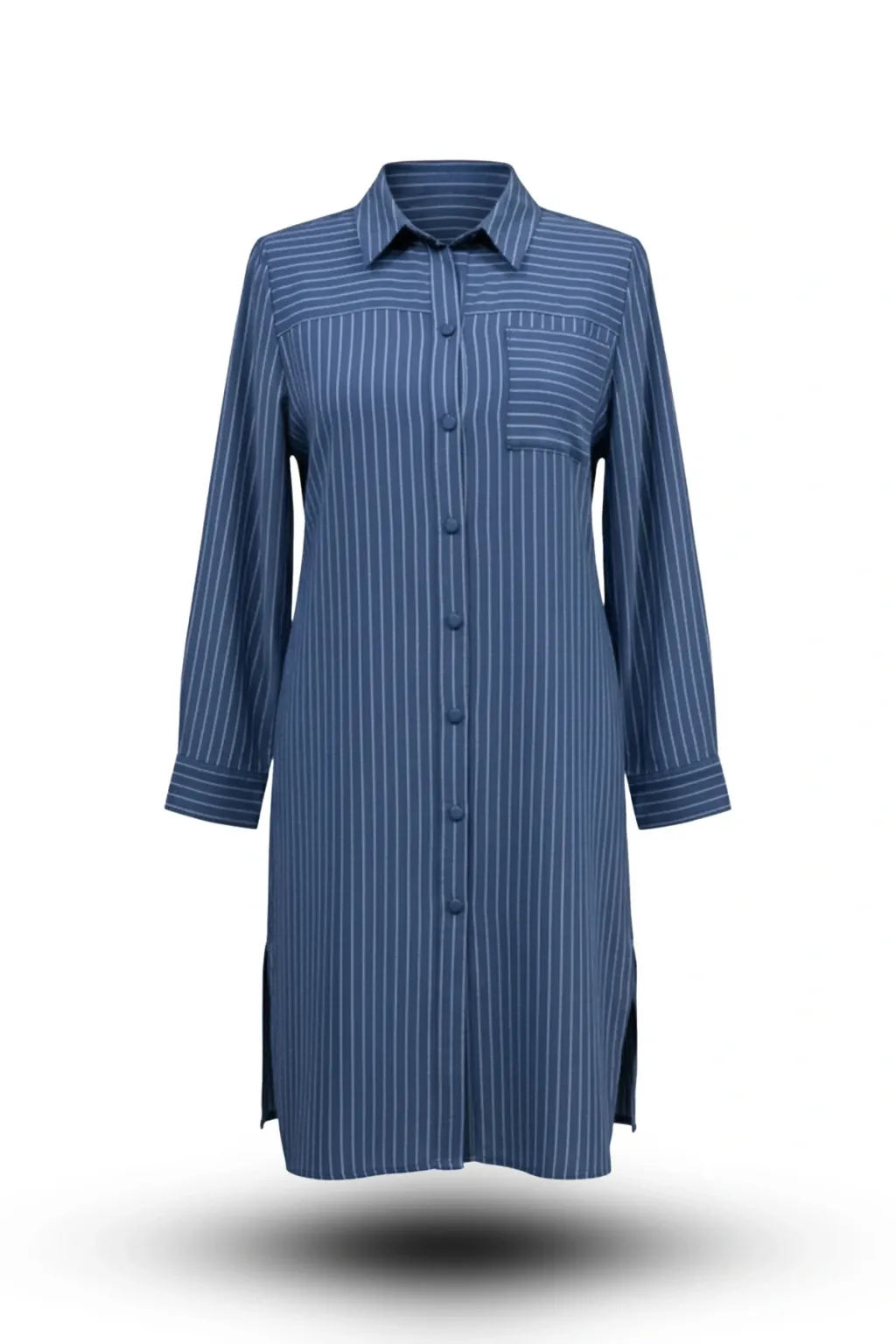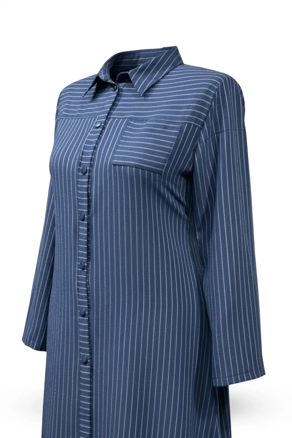 Hesna 5311 Çizgili Tunik - İndigo - (asorti: 46-52)