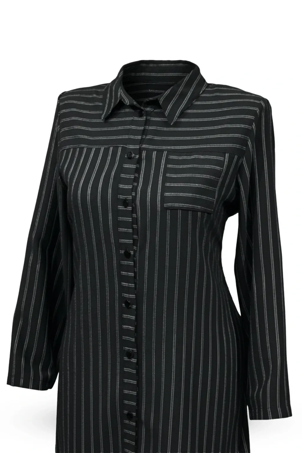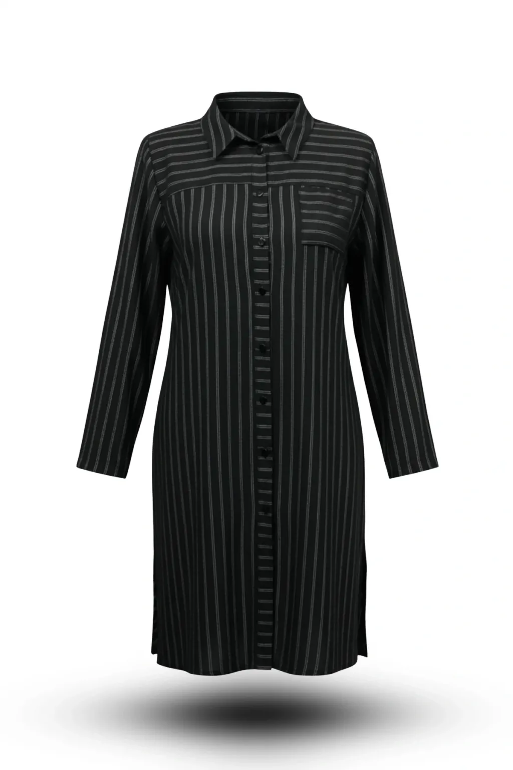Hesna 5311 Çizgili Tunik - Siyah - (asorti: 46-52)