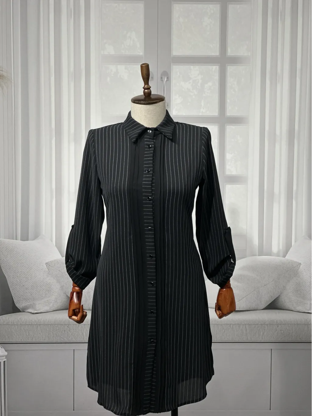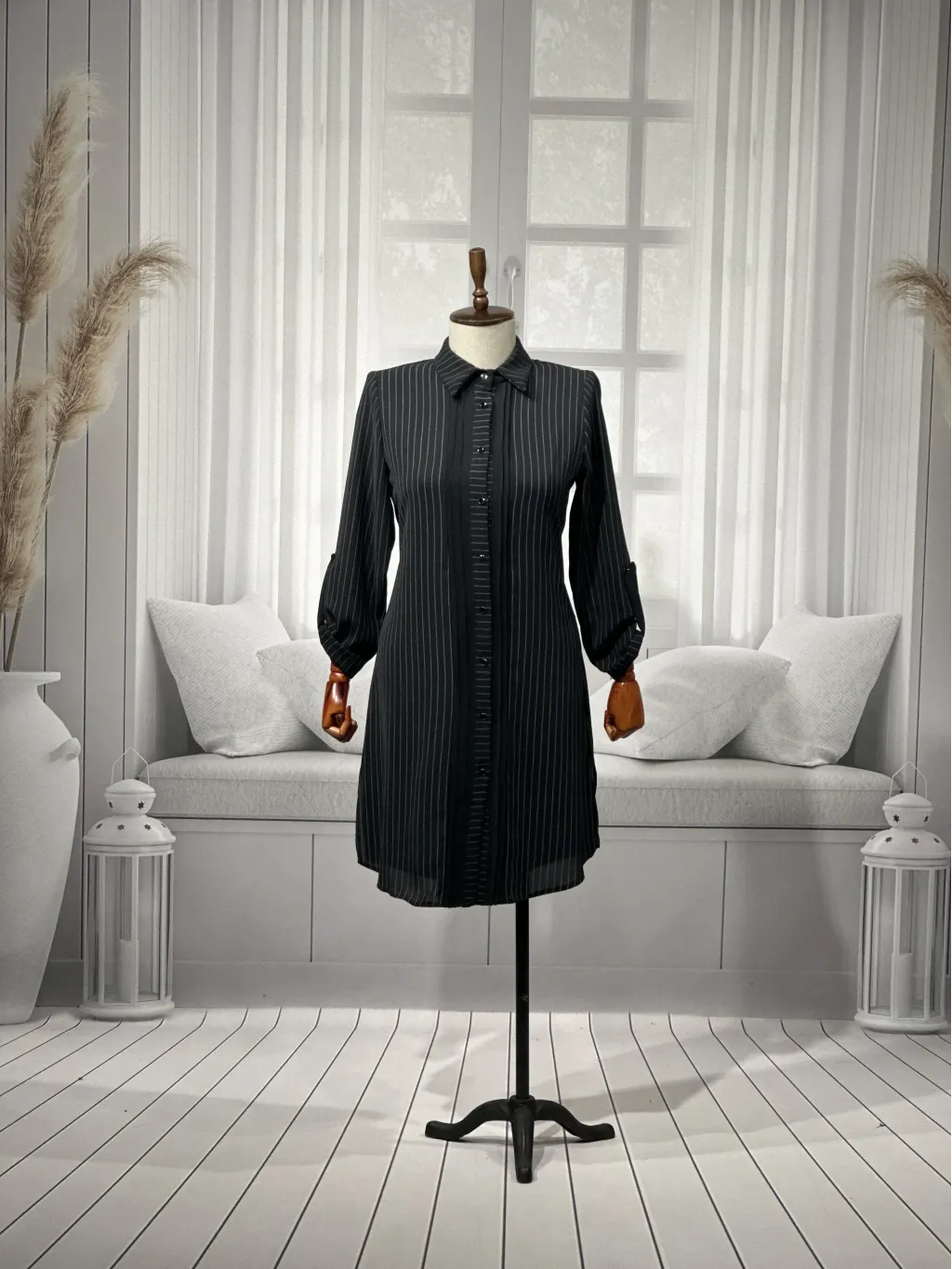 HESNA 5311 ÇİZGİLİ TUNİK - SİYAH - (Asorti: 46-52)