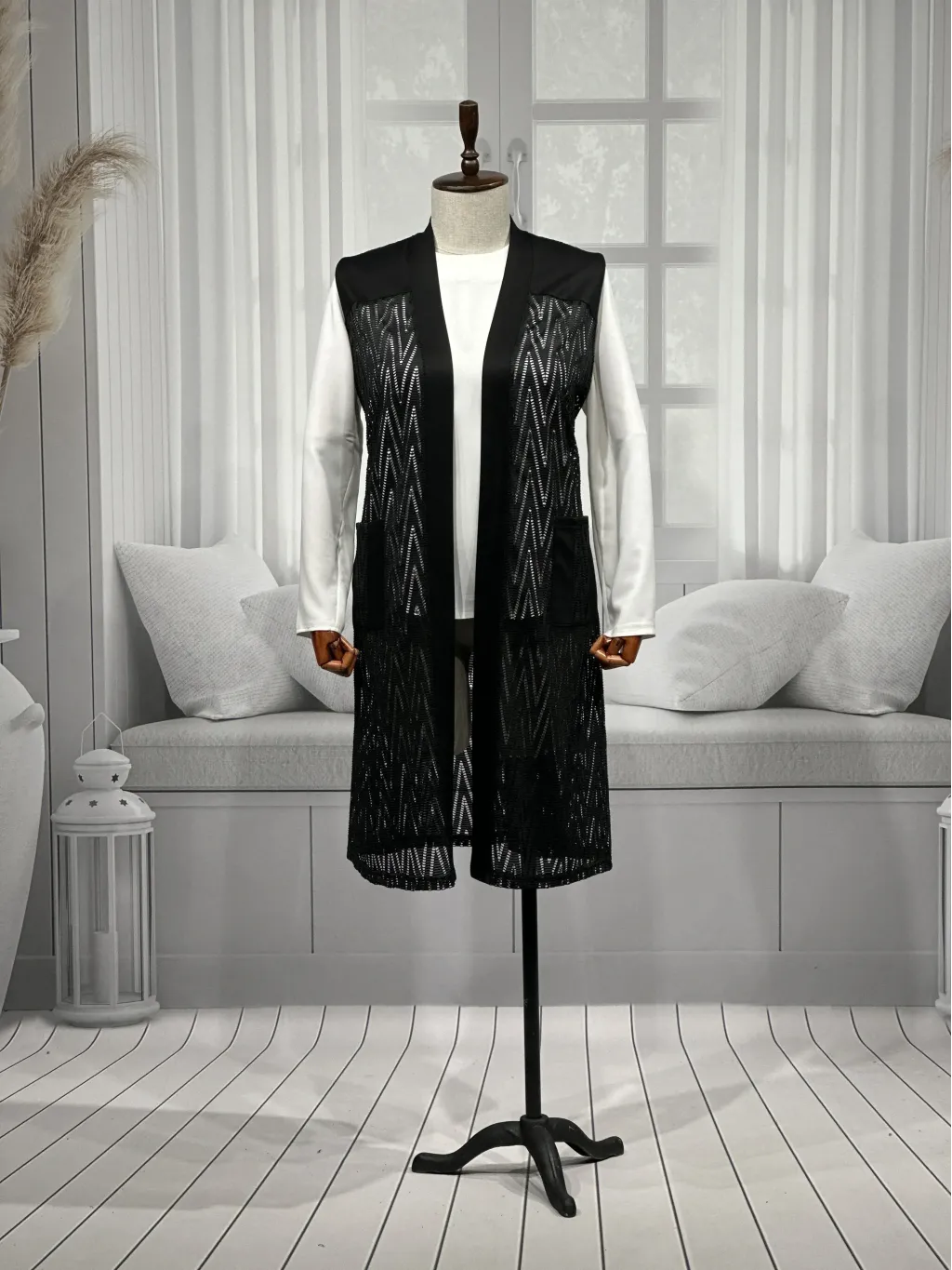 BUĞRA UZUN YELEK - SİYAH - (Asorti: 4-6)