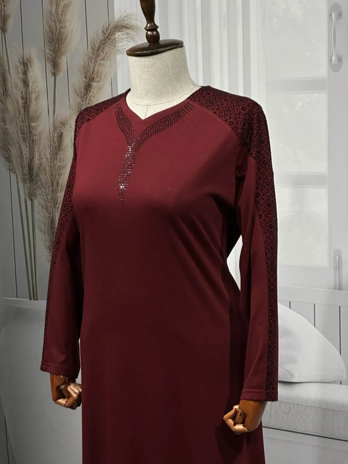 Hesna 8026 (btt) Elbise - Bordo - (asorti: 7-9)