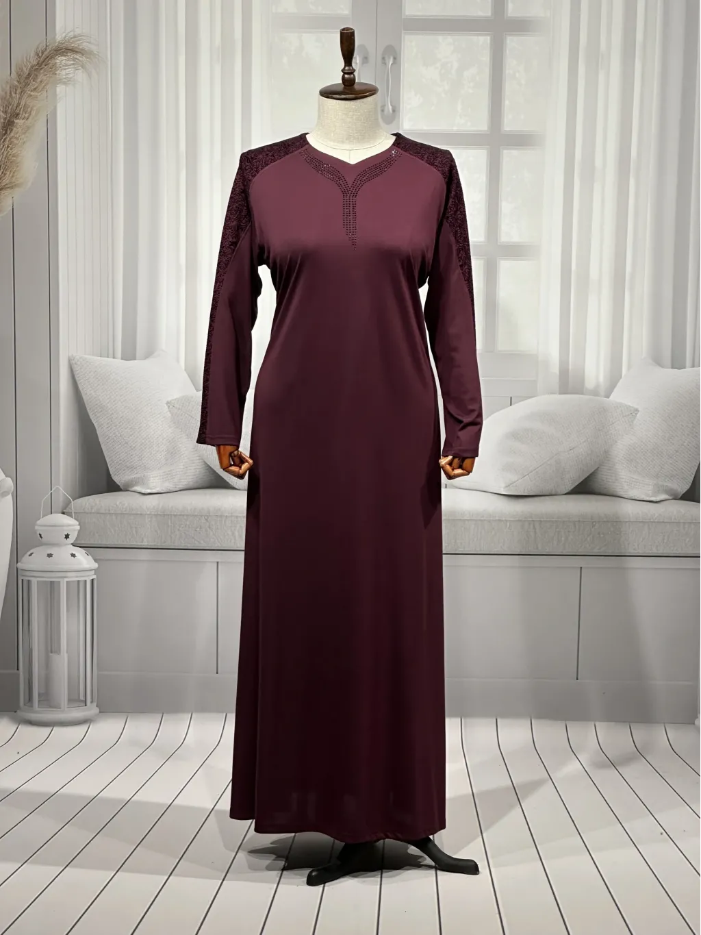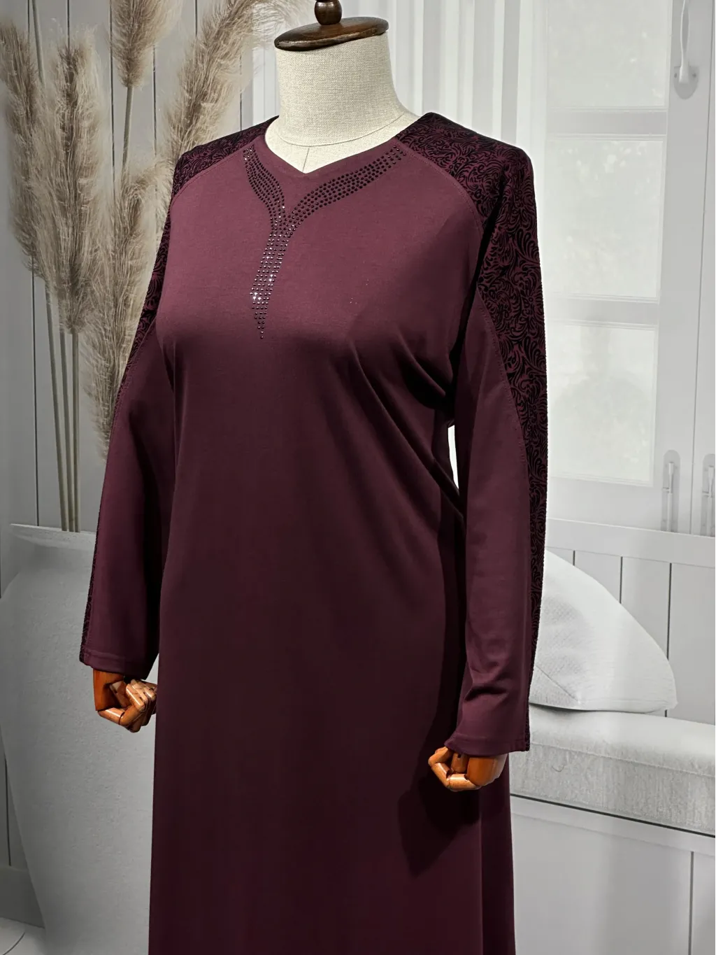 DEMET ELBİSE - BORDO - 556/S - (Asorti: 4-7)