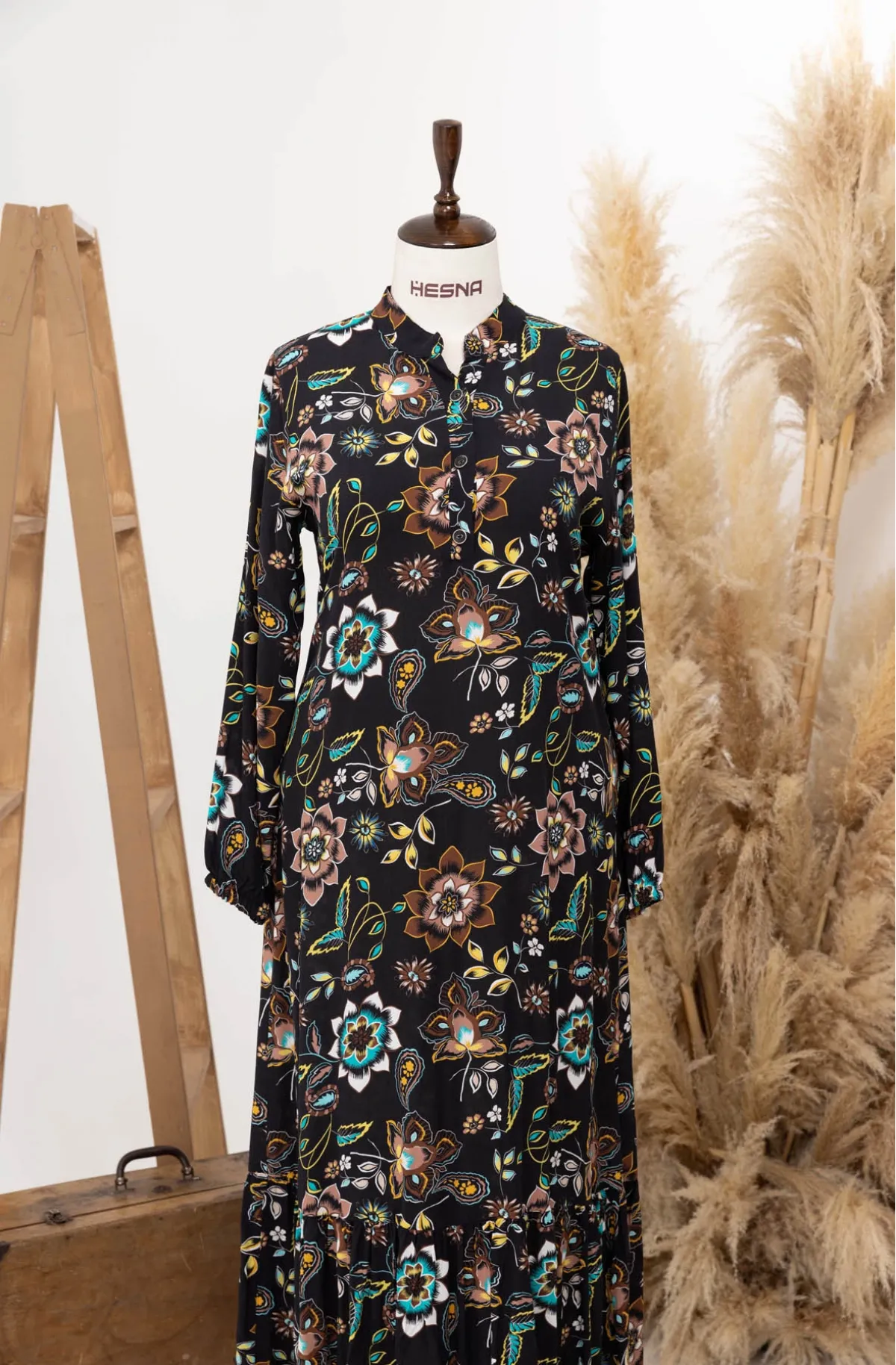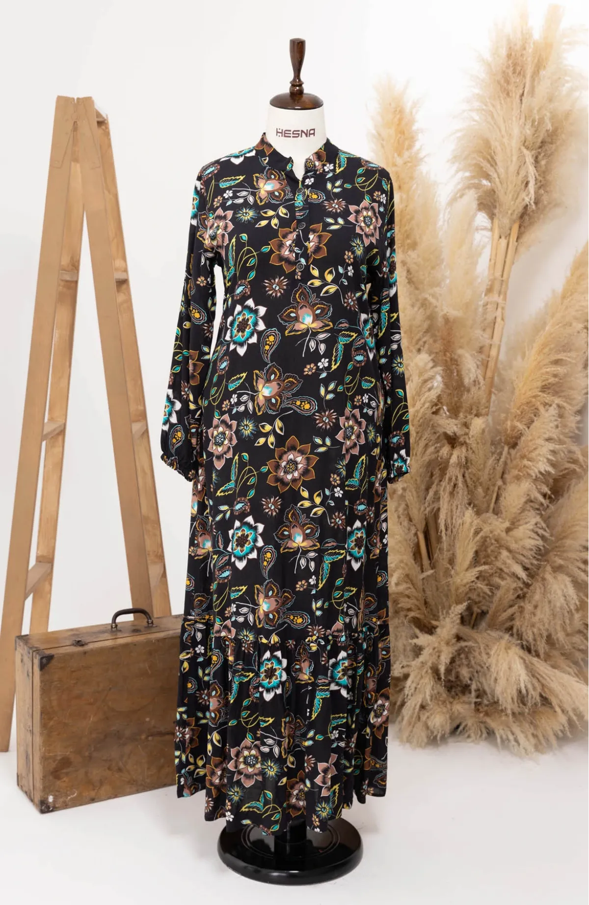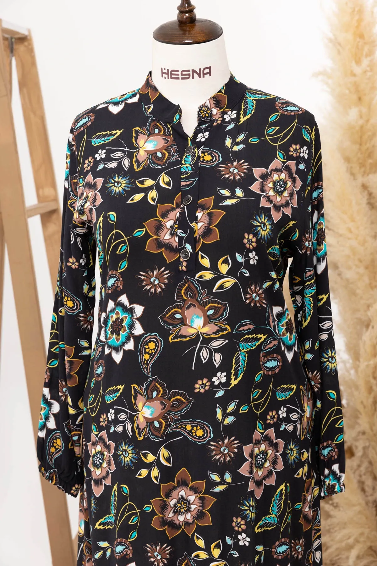 Hesna 8463 Baskılı Elbise - Siyah - (asorti: 44-54)