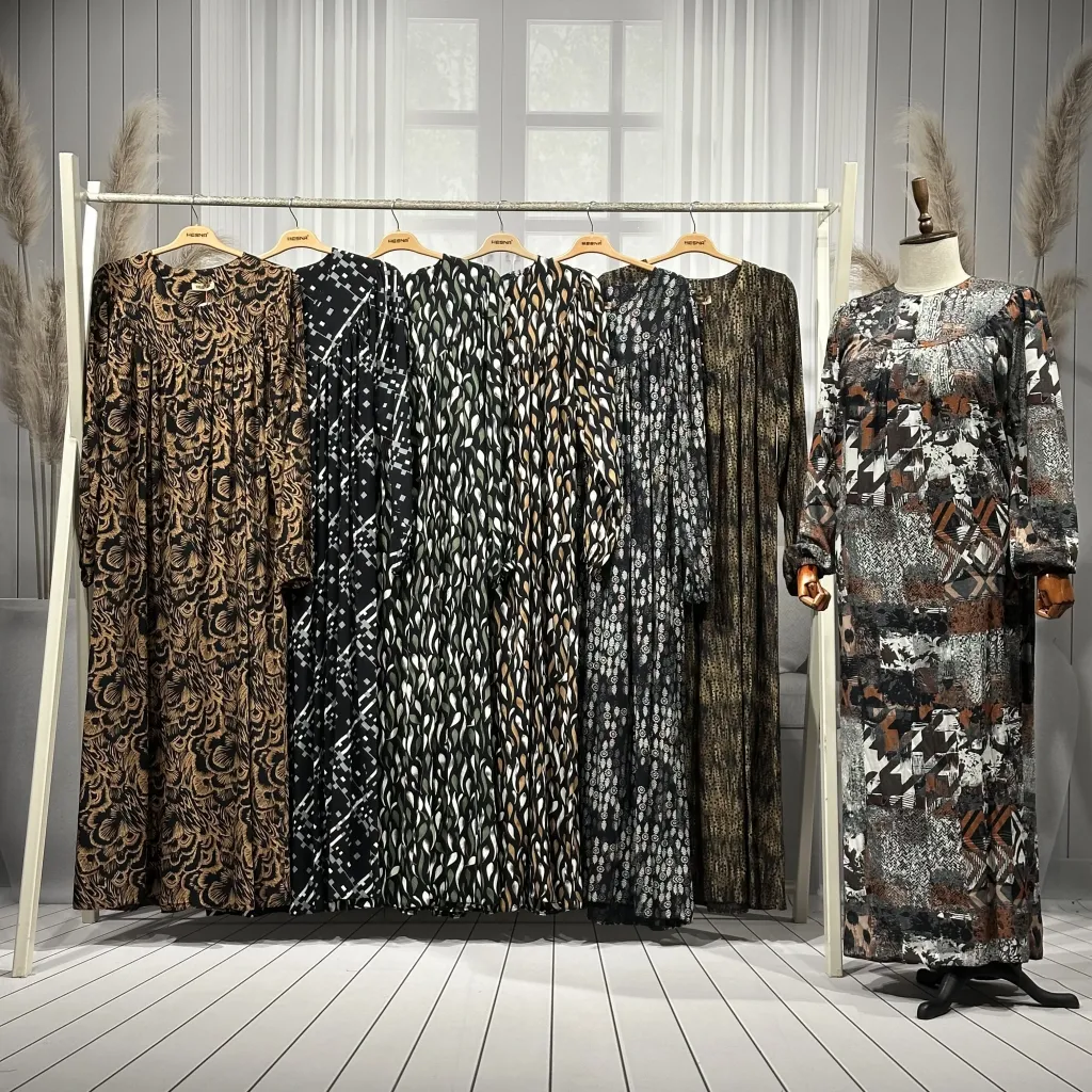 HESNA 8506 BASKILI ELBİSE - KAHVE - (Asorti: 4-6)