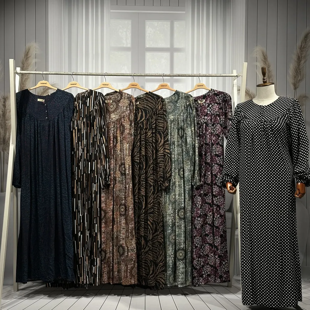 Hesna 8227 Robalı Elbise - Karışık Desenler - 01-karışık Desen - (asorti: 3-5-7)