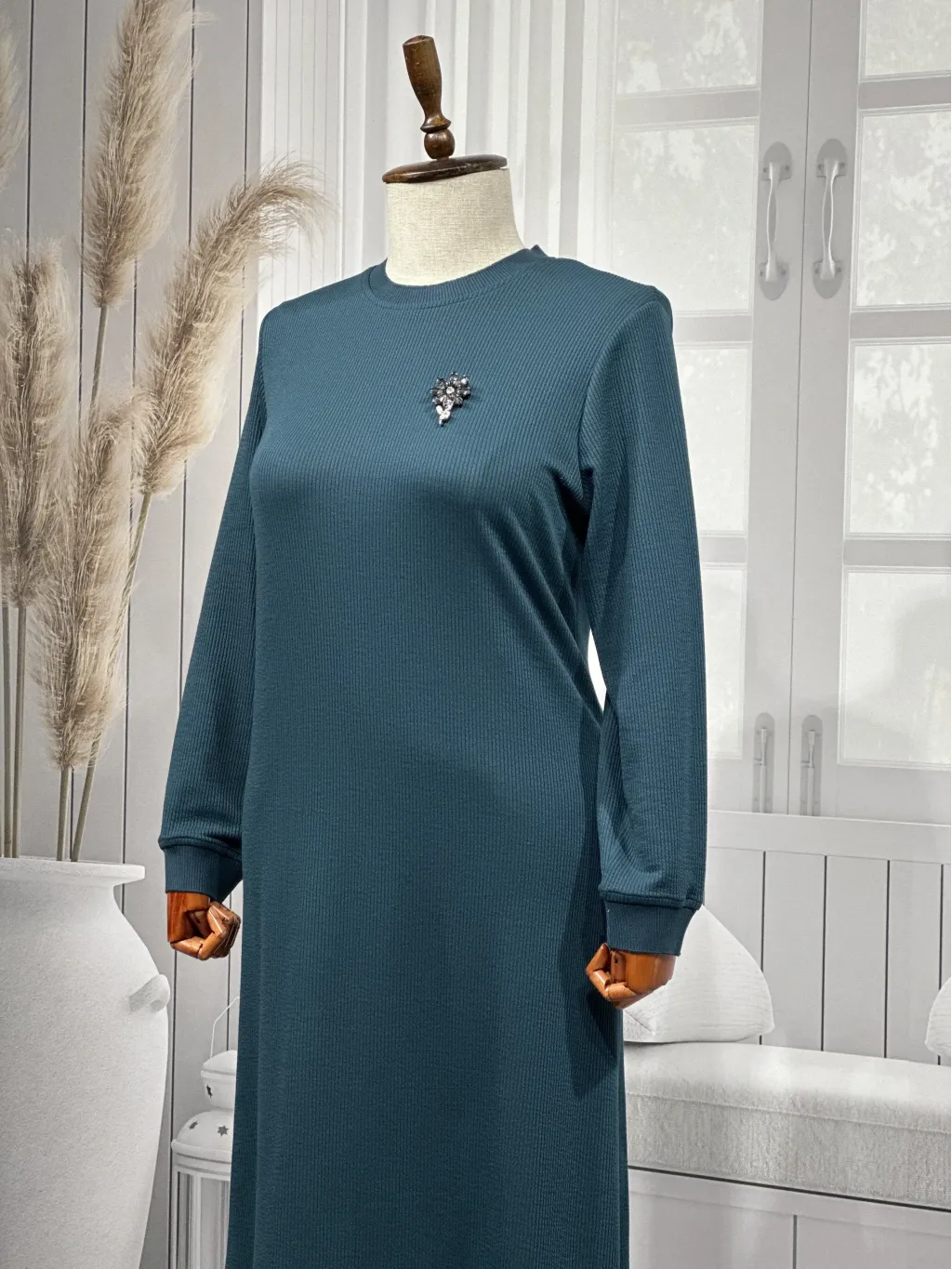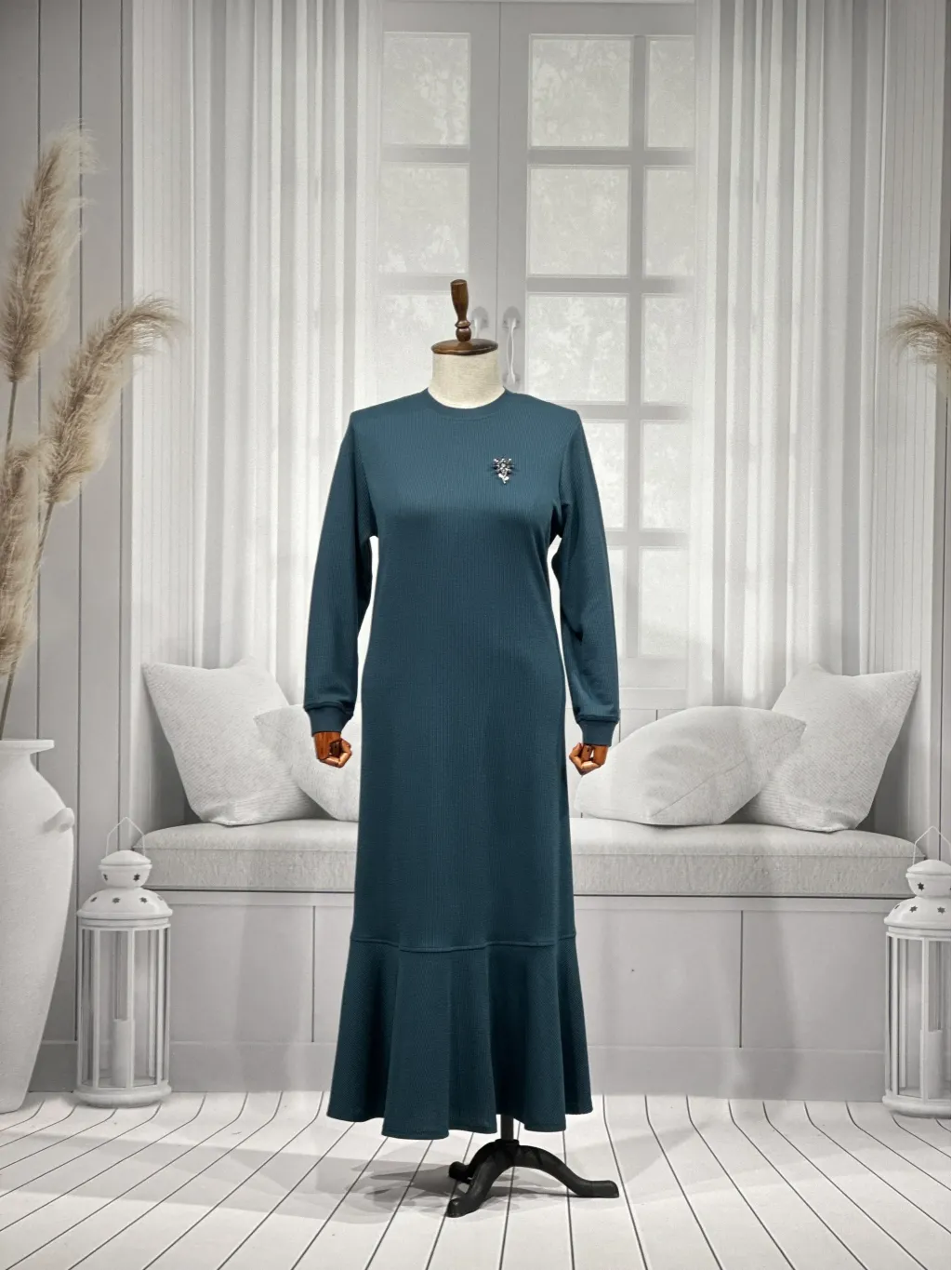 DEMET ELBİSE - PETROL - R10594 - (Asorti: 4-7)
