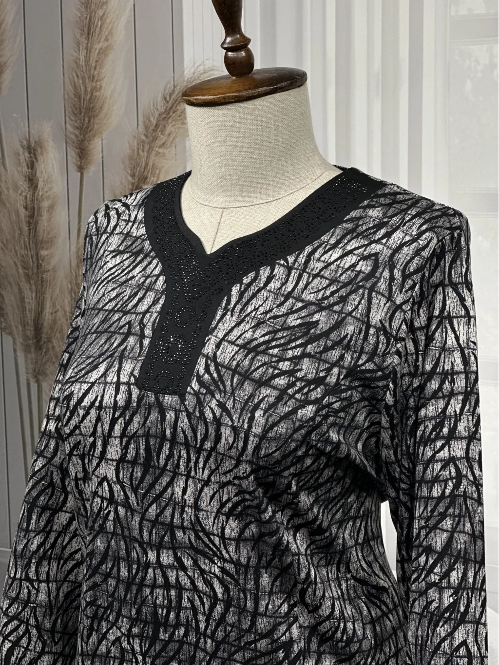 HESNA 8506 BASKILI ELBİSE - SİYAH - (Asorti: 4-6)
