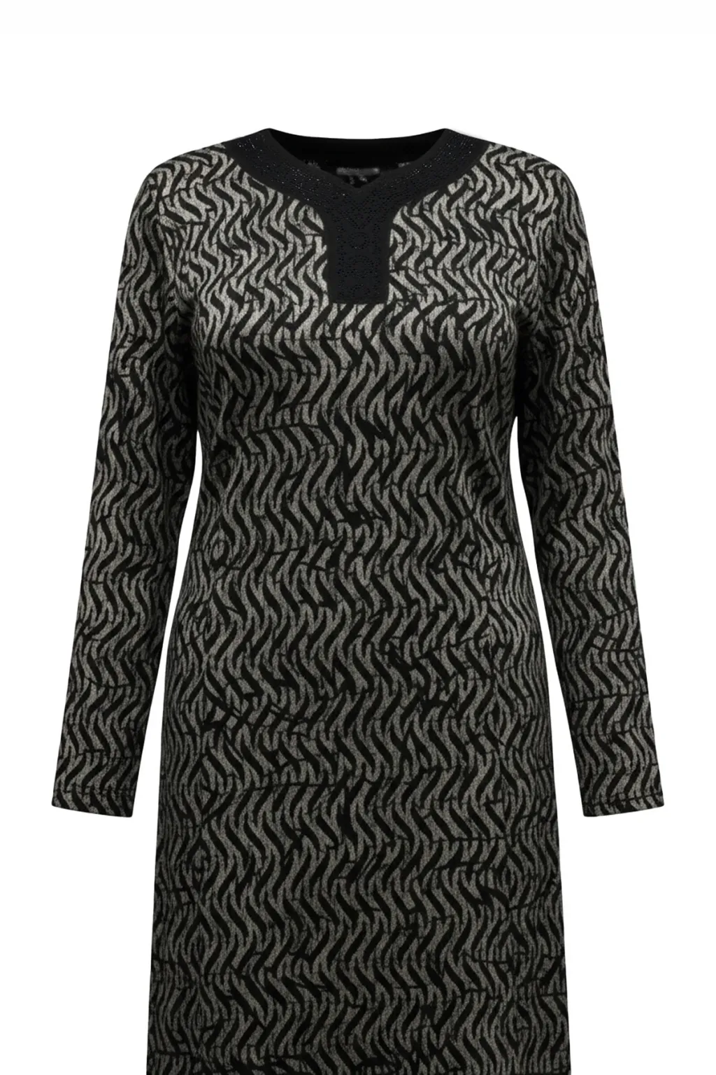 HESNA 8506 BASKILI ELBİSE - SİYAH - (Asorti: 4-6)