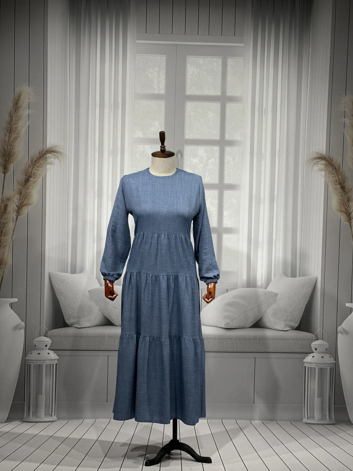 Hesna 8322 Elbise - Kot Mavi - (asorti: 3-5)