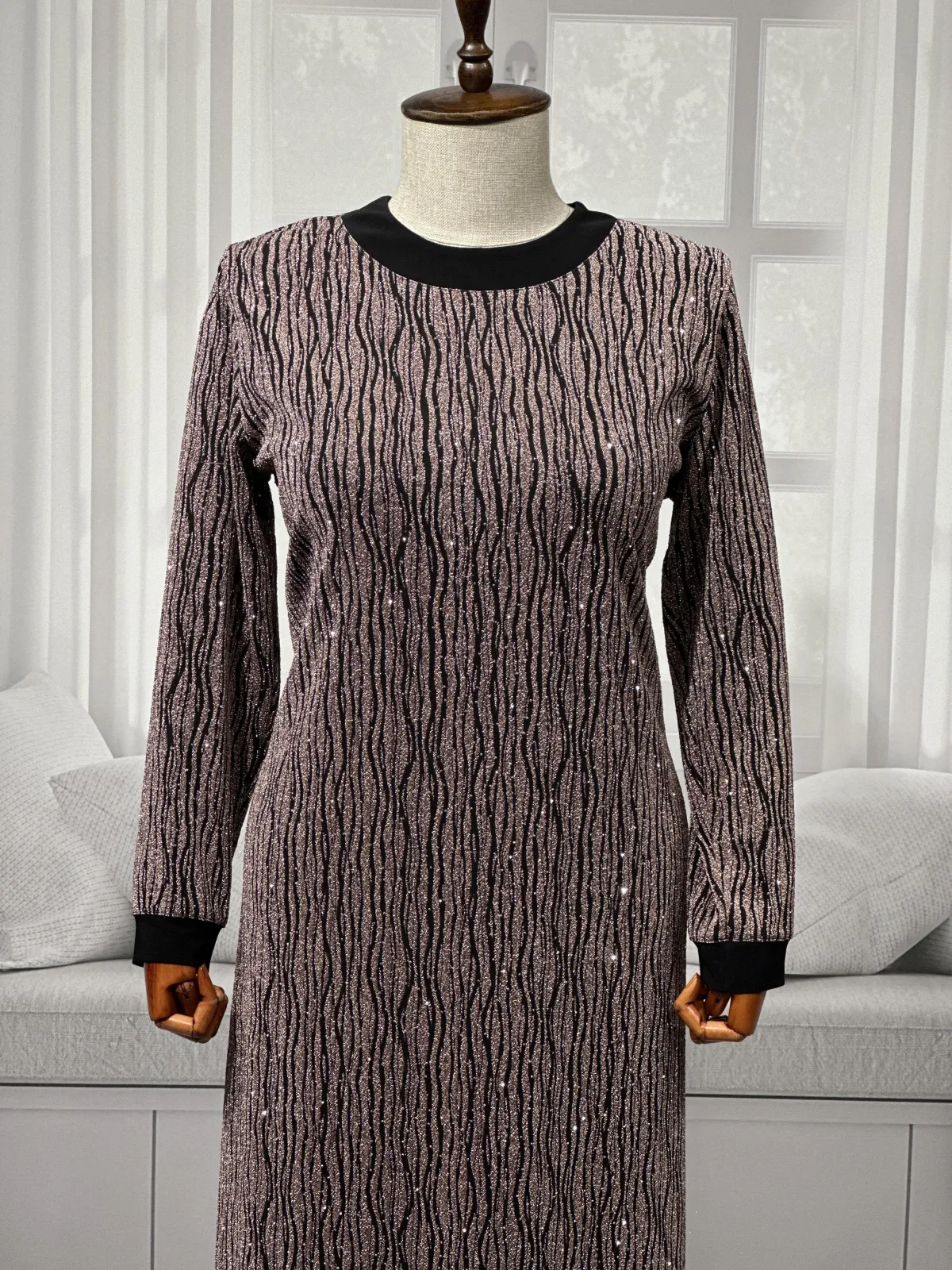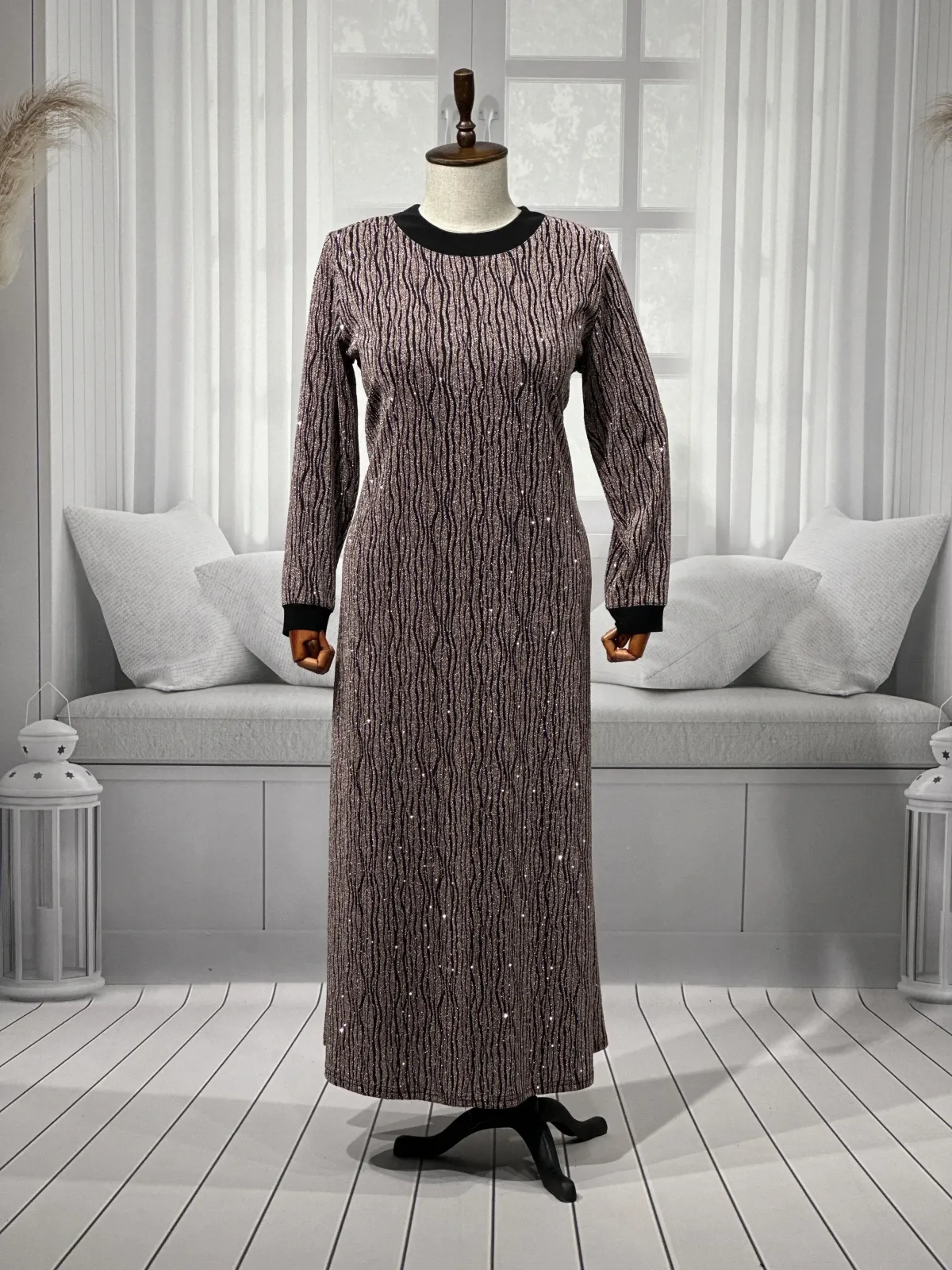 Hesna 8422 Elbise - Koyu Vizon - (asorti: 3-6)