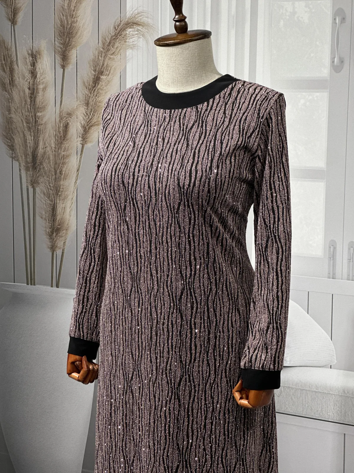 Hesna 8260 Btt. Elbise - Siyah & Vizon - 20613 - (asorti: 8-9)