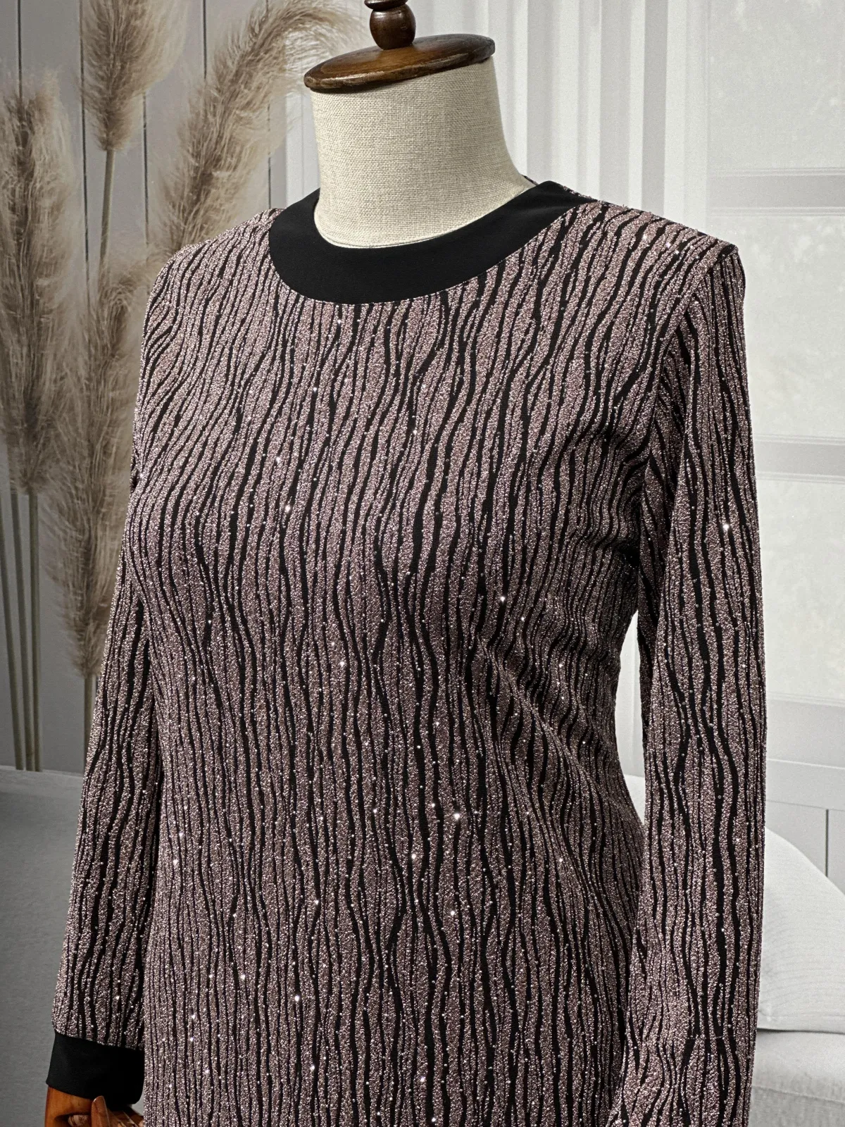 Hesna 8260 Btt. Elbise - Siyah & Vizon - 40178 - (asorti: 8-9)