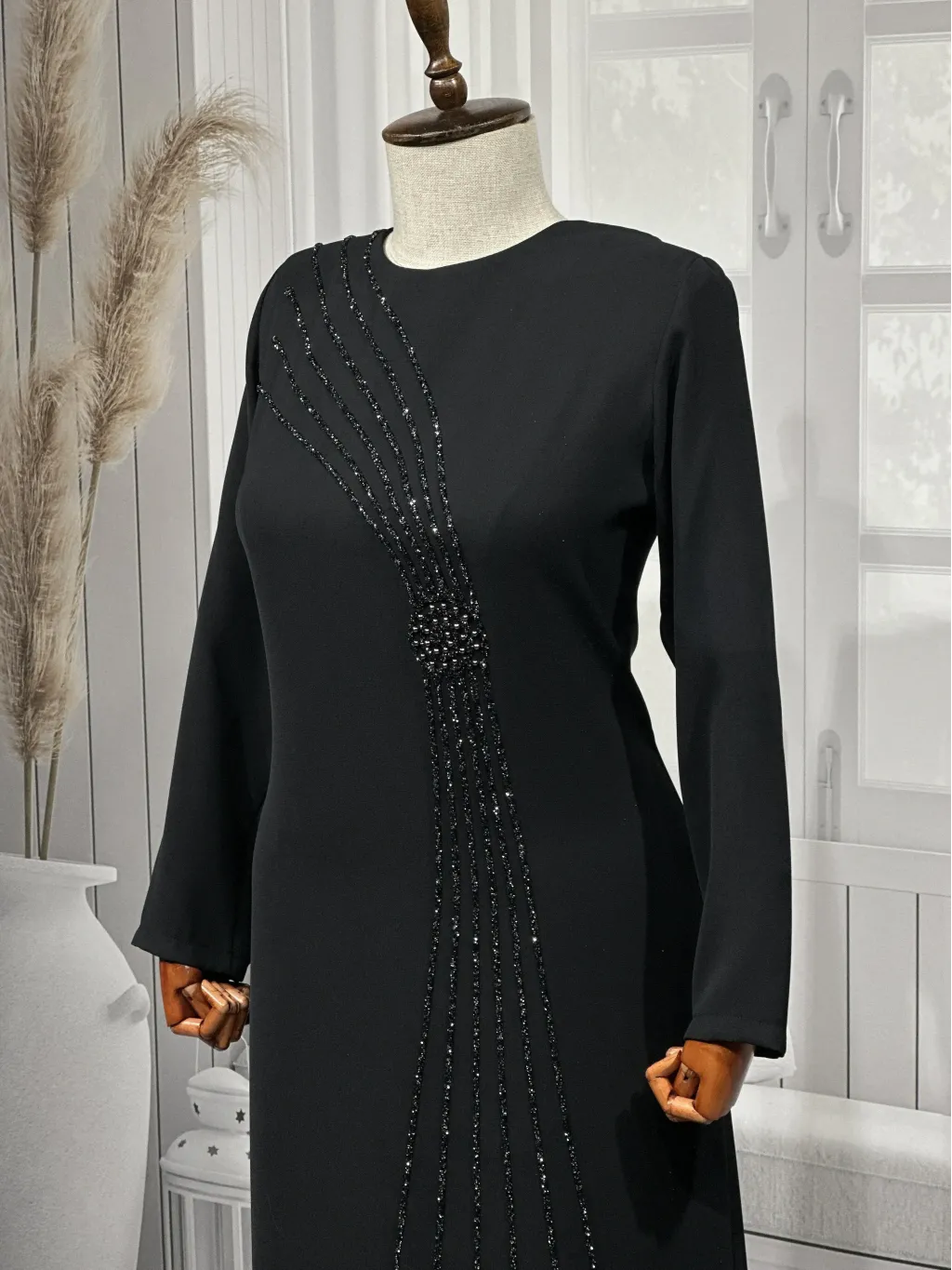 HESNA 8447 ELBİSE - SİYAH - (Asorti: 4-6)