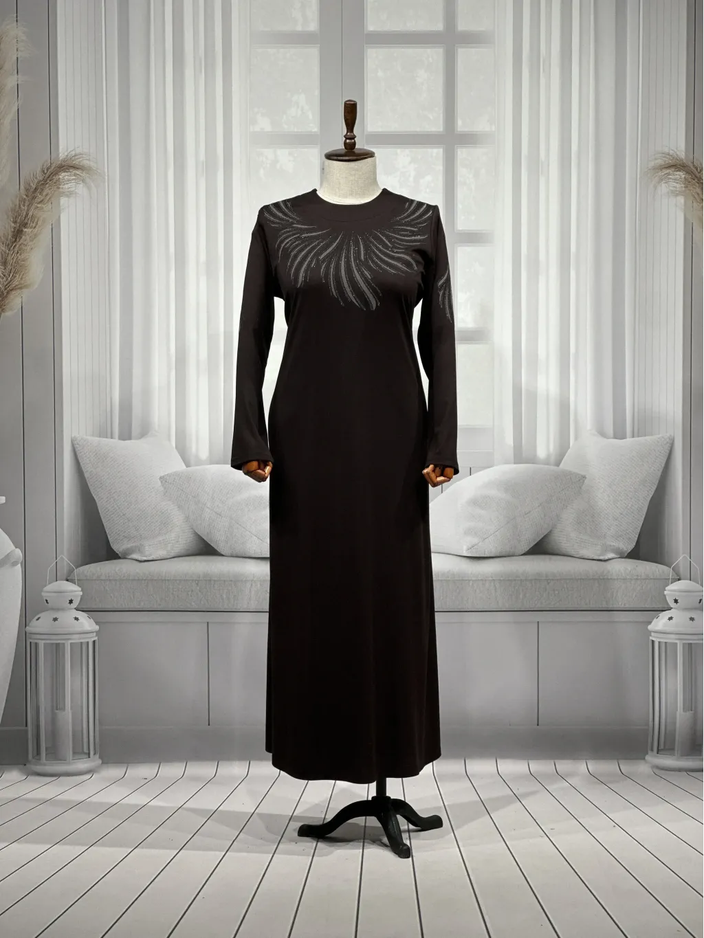 HESNA 8438 ELBİSE - KAHVE - (Asorti: 3-5)