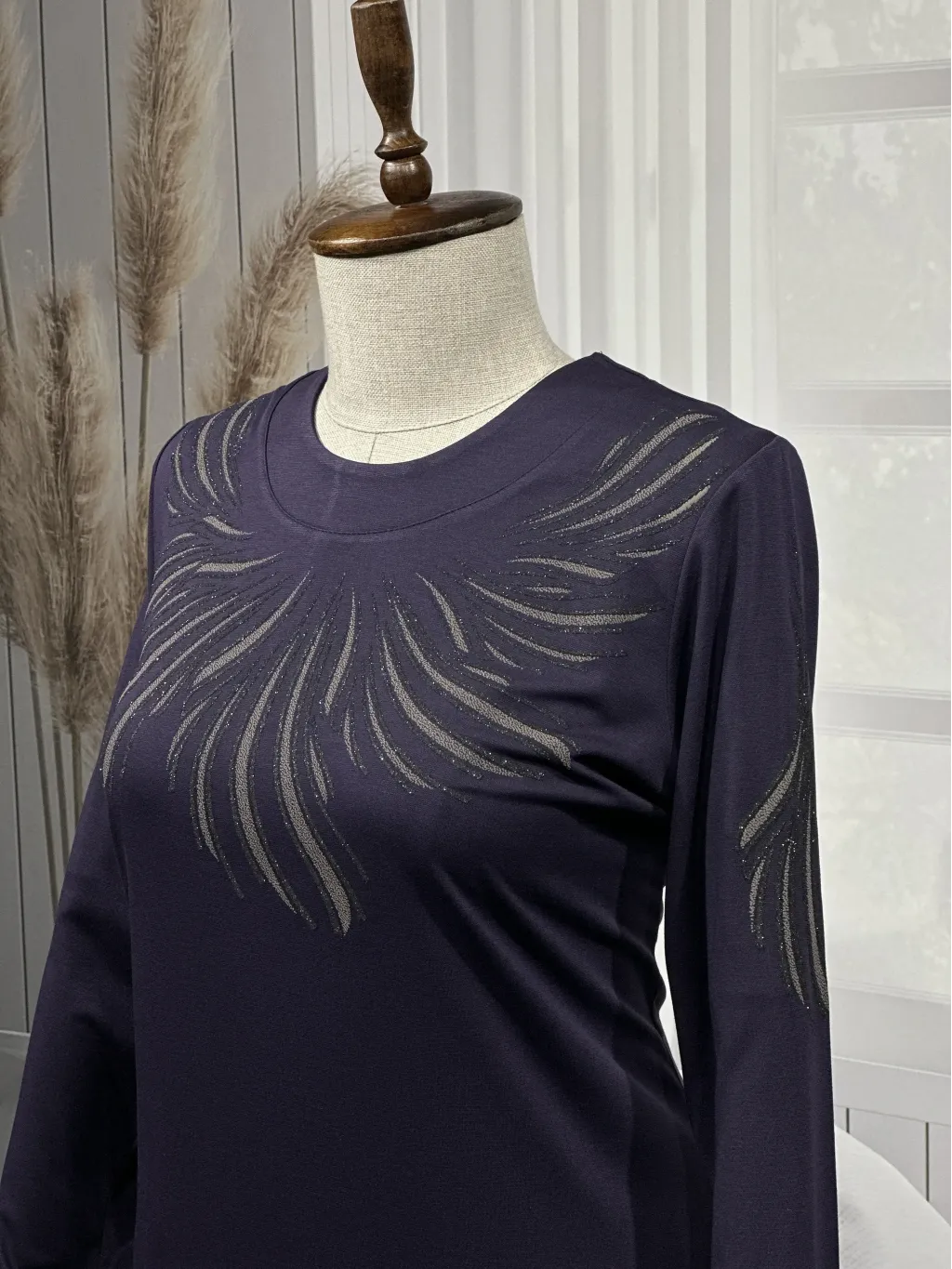Hesna 8506 Baskılı Elbise - Mürdüm - (asorti: 4-6)