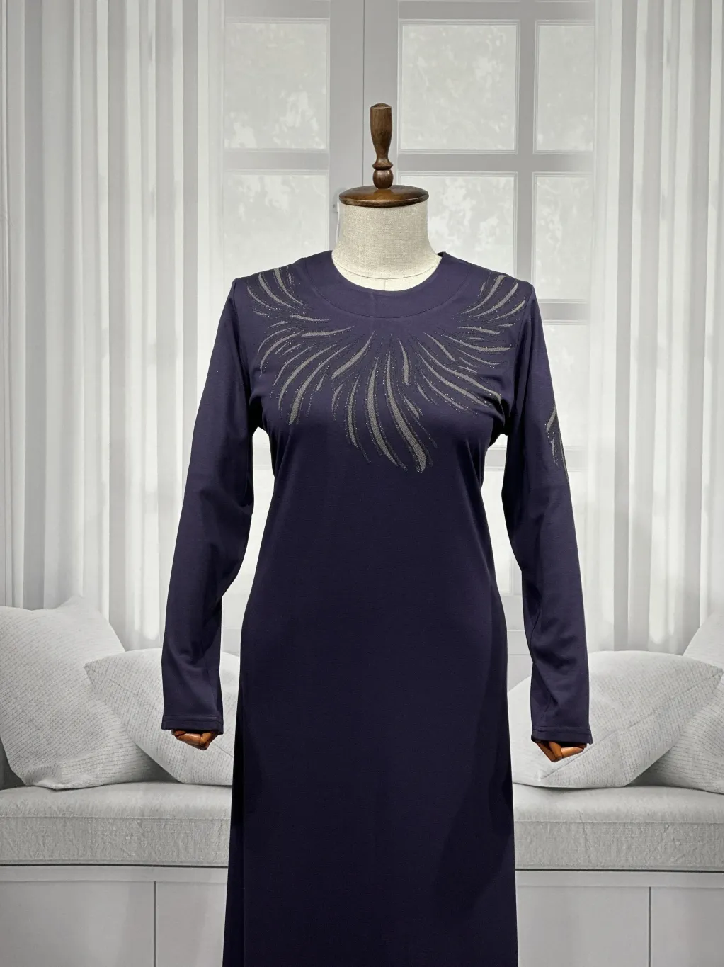HESNA 8506 BASKILI ELBİSE - LACİVERT - (Asorti: 4-6)