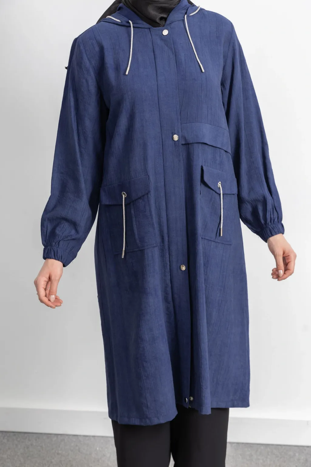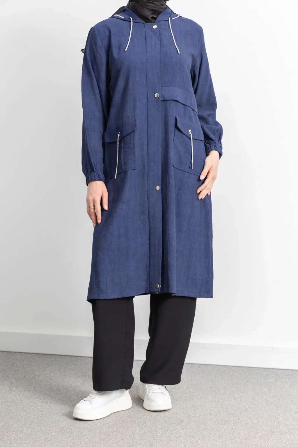 ÖNÜ ÇITÇITLI KAPÜŞONLU GİYÇIK - LACİVERT - (Asorti: 46-52)