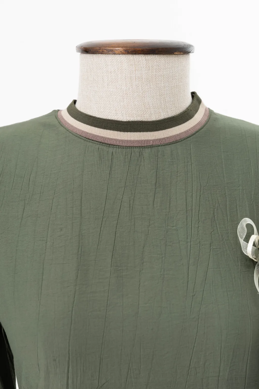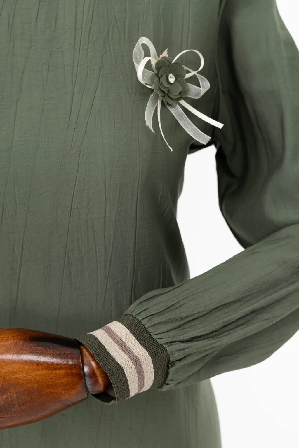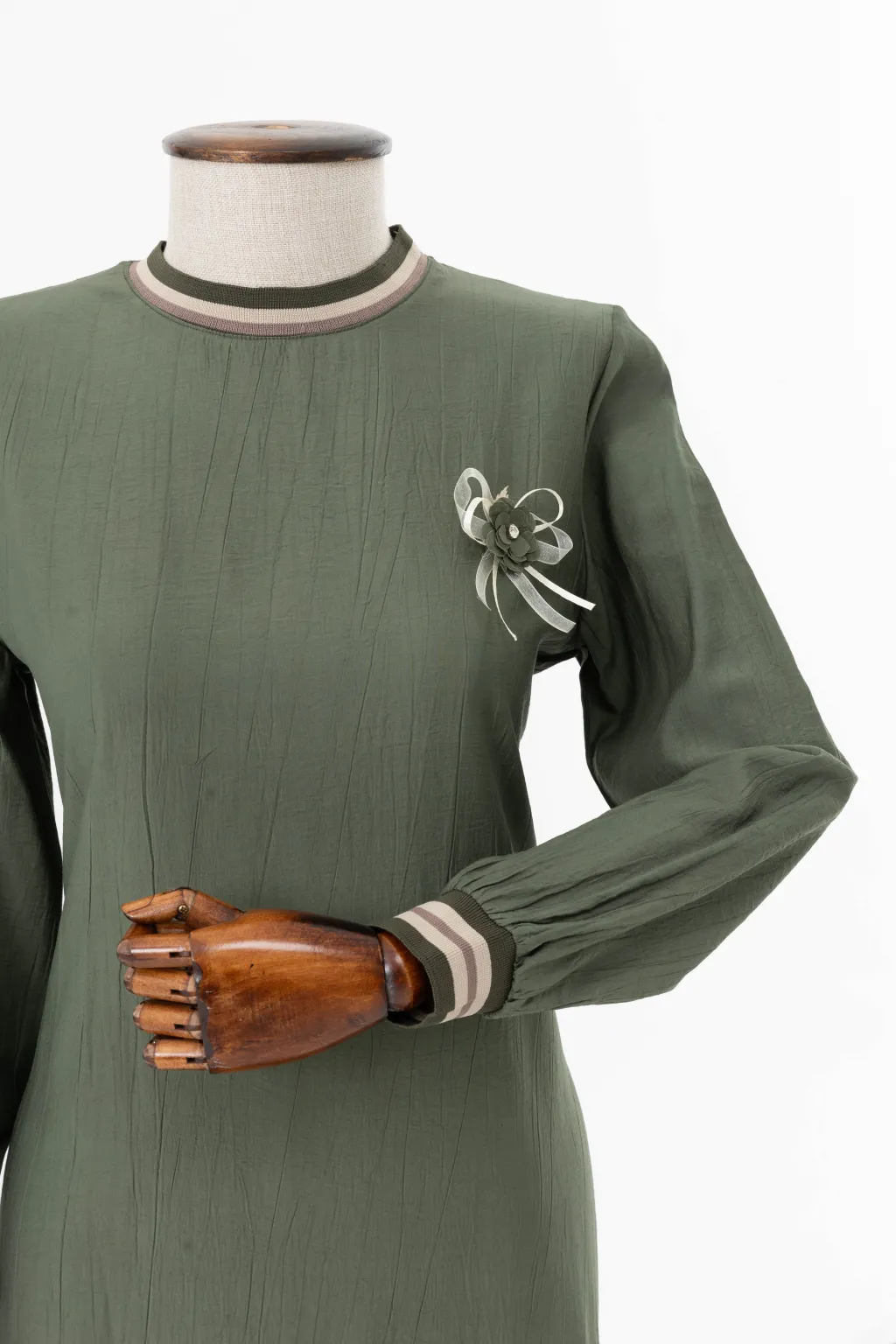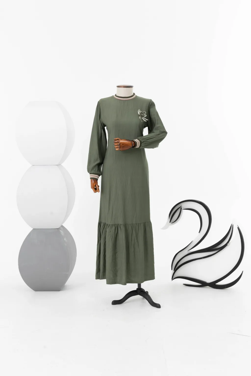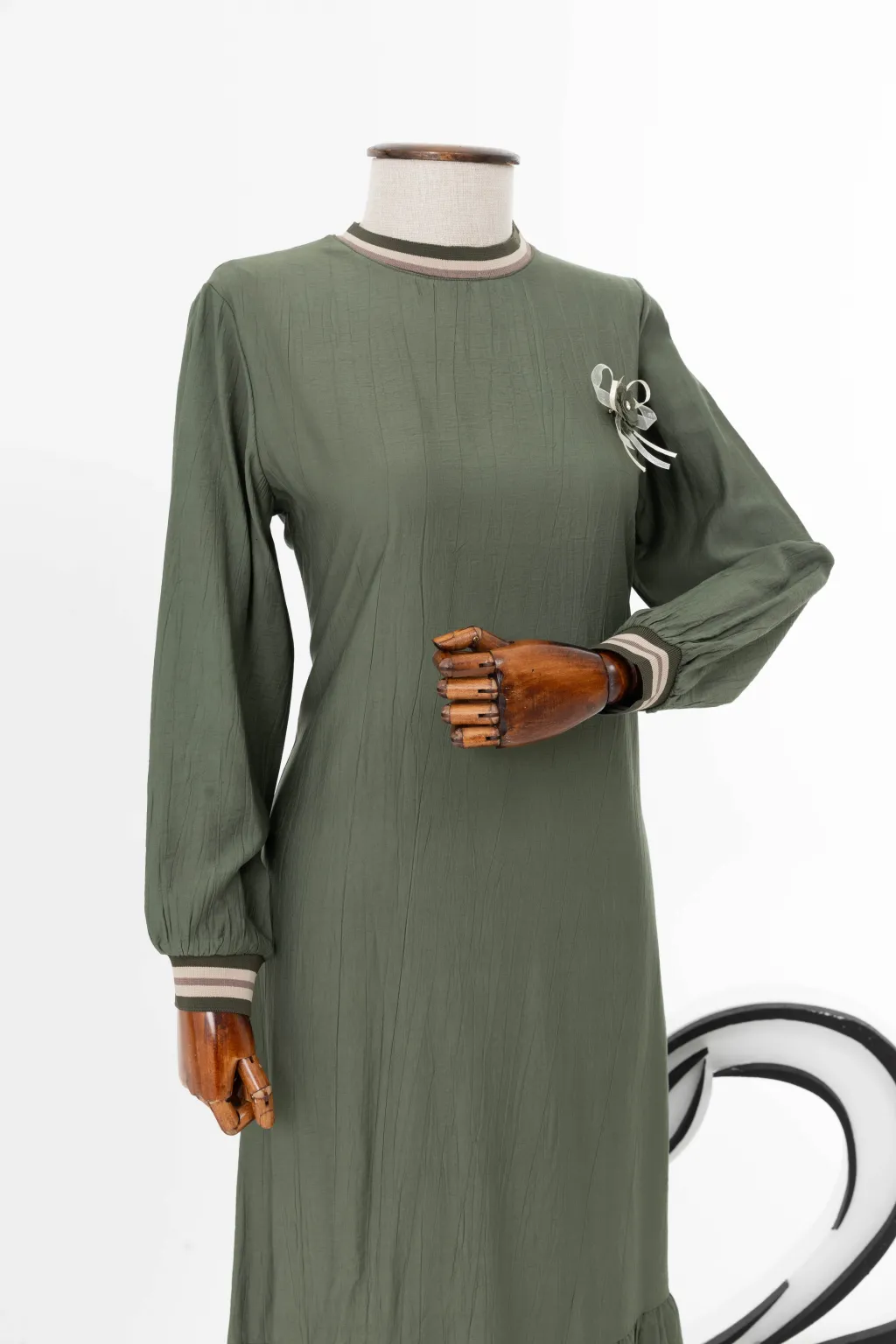 YAKASI VE MANŞETİ RİBANALI ELBİSE - HAKİ - (Asorti: M-XXL)