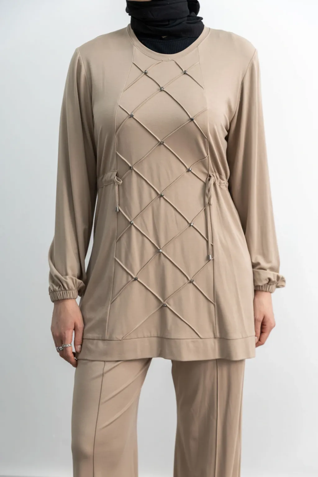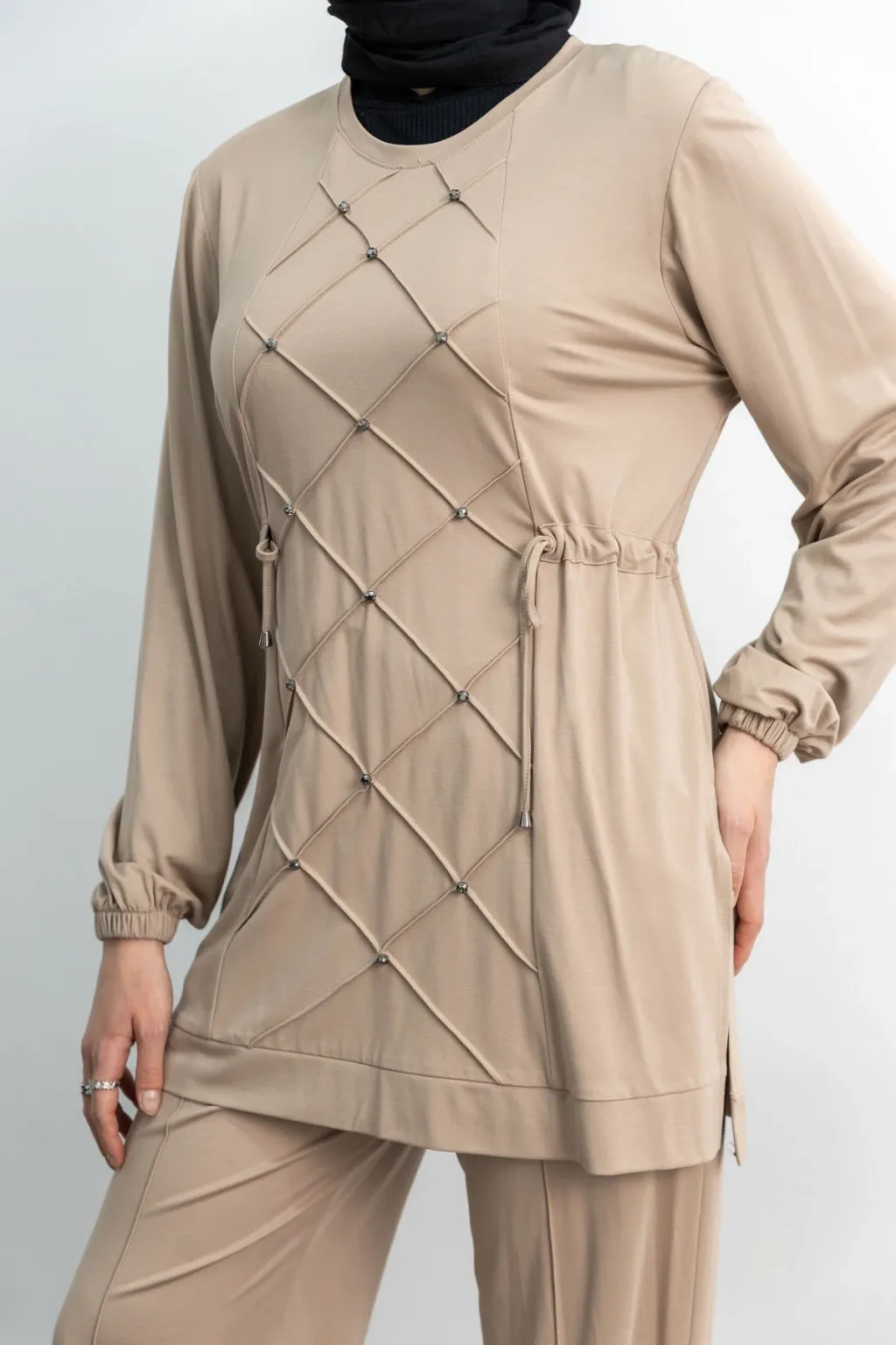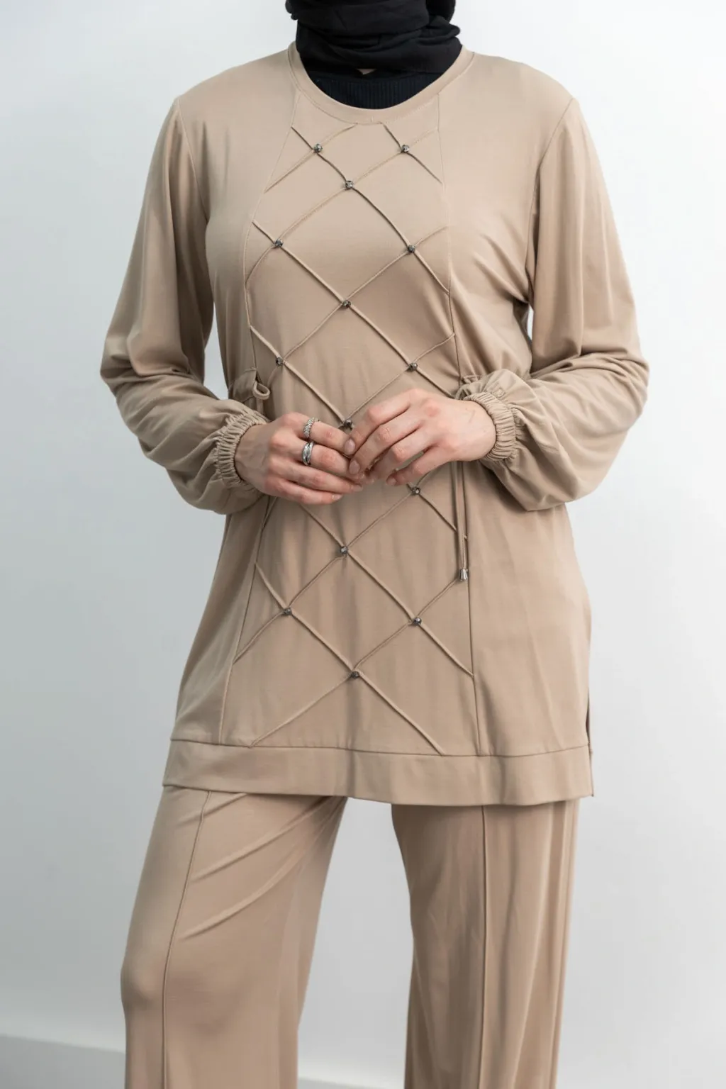LETAFET RİVET DETAYLI FERMUARLI PANTOLONLU TAKIM - TABA - (Asorti: M-XXL)