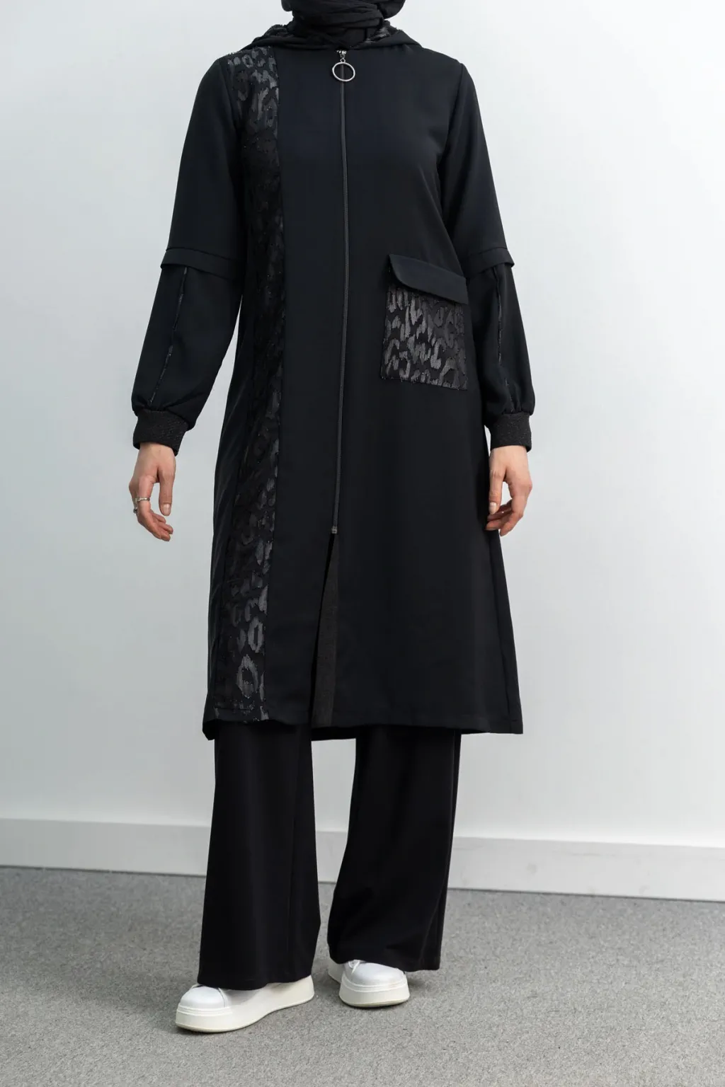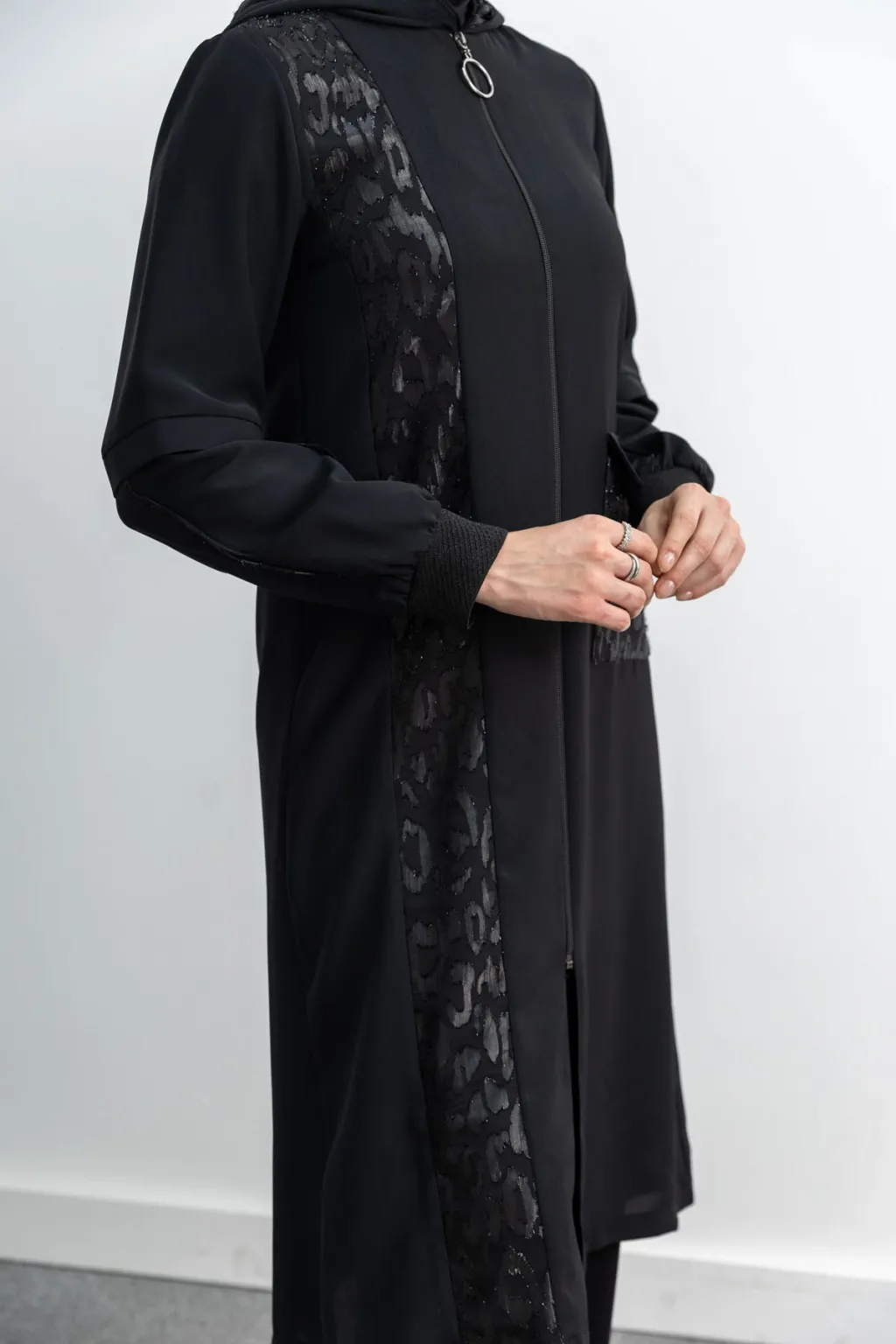 ÖNÜ ÇITÇITLI KAPÜŞONLU GİYÇIK - SİYAH - (Asorti: 46-52)