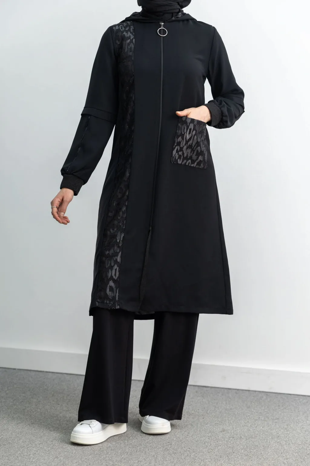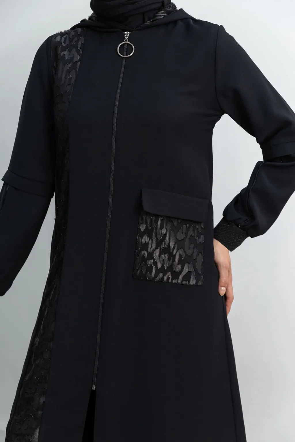 KAPÜŞONLU RİBANA VE ALLER DETAYLI GİYÇIK - SİYAH - (Asorti: 46-52)