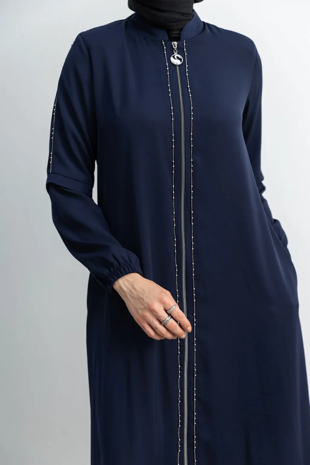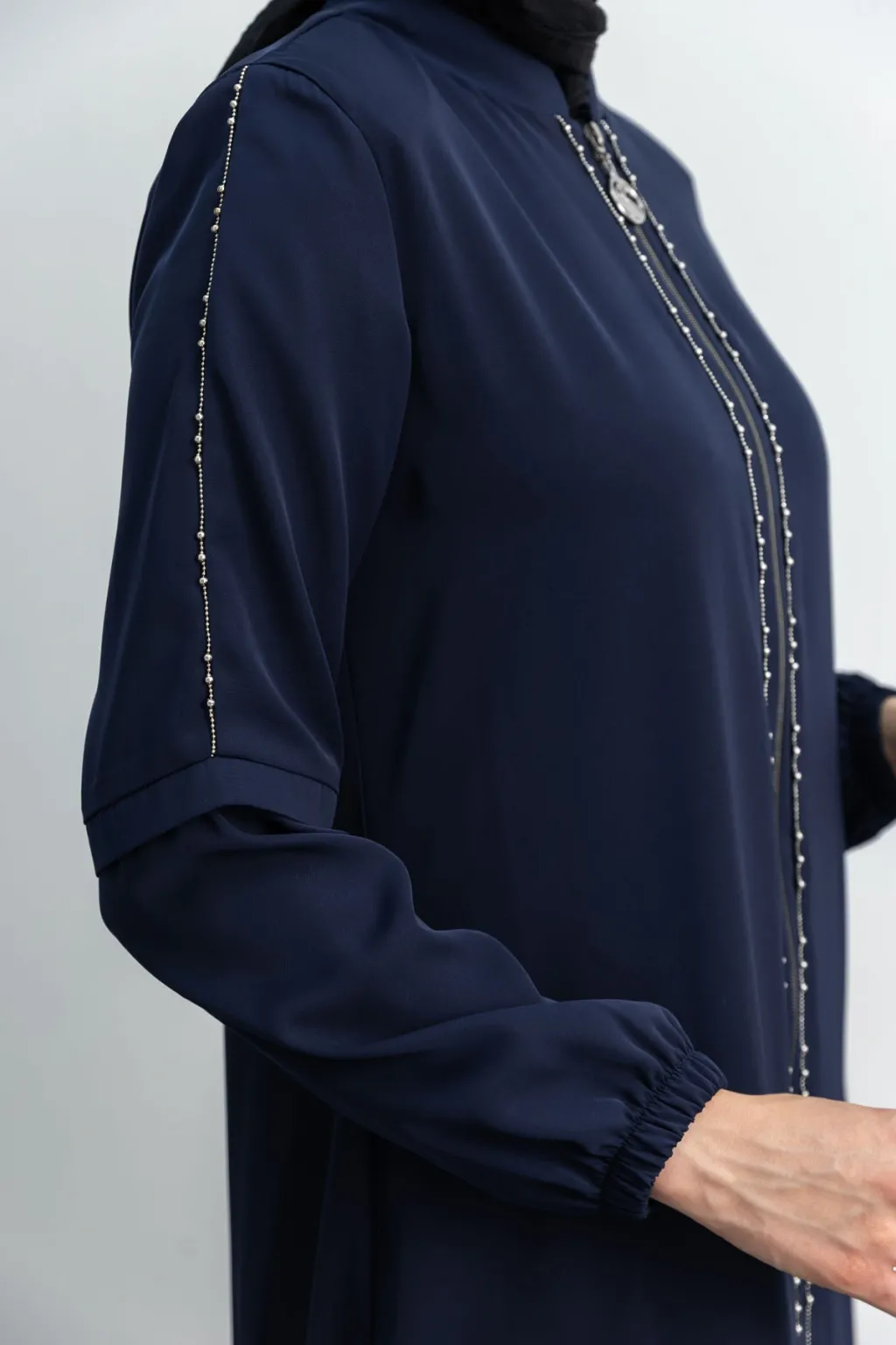 ÇITÇITLI KAPÜŞONLU FERACE - LACİVERT - (Asorti: 46-52)