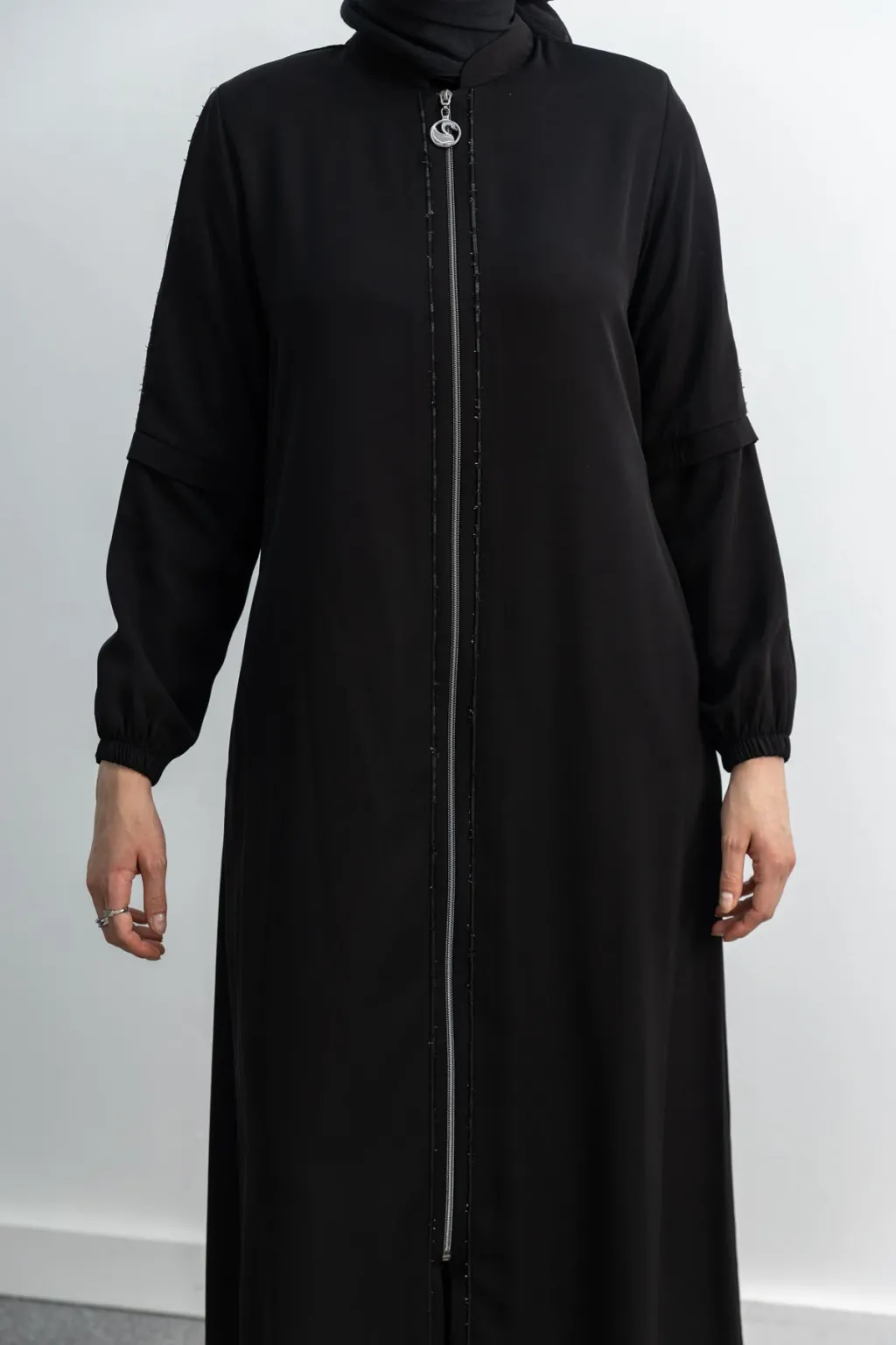ÇITÇITLI KAPÜŞONLU FERACE - SİYAH - (Asorti: 46-52)