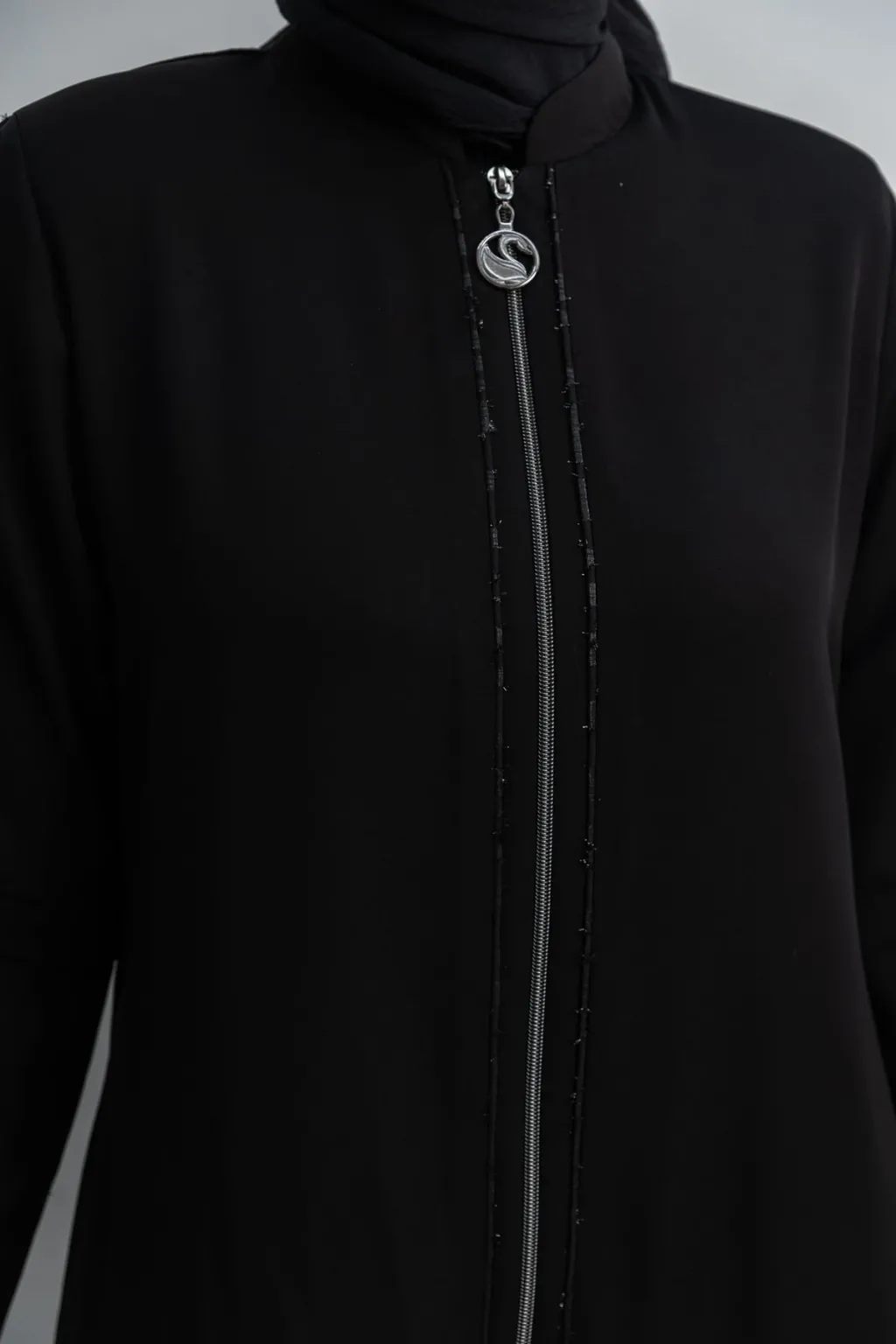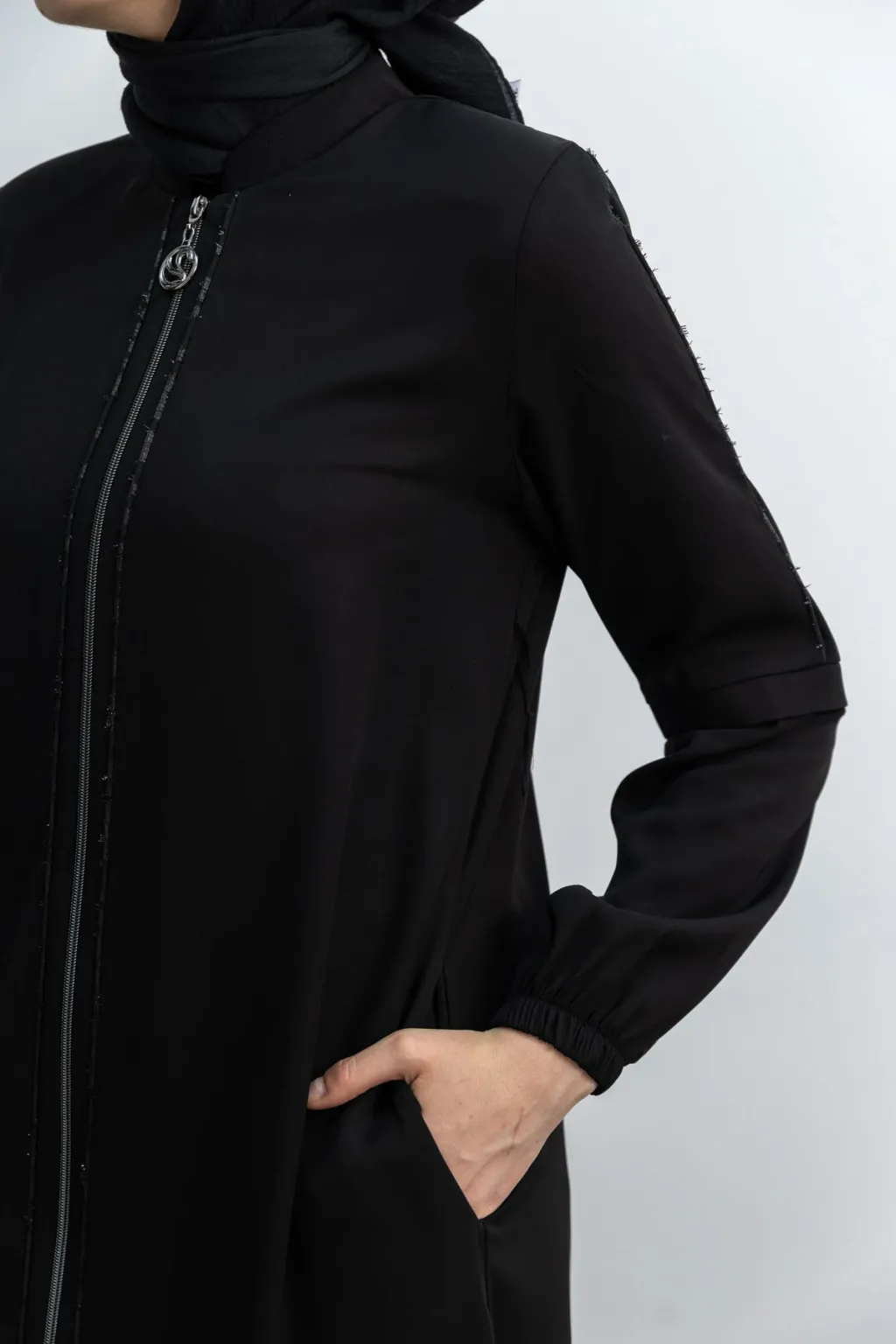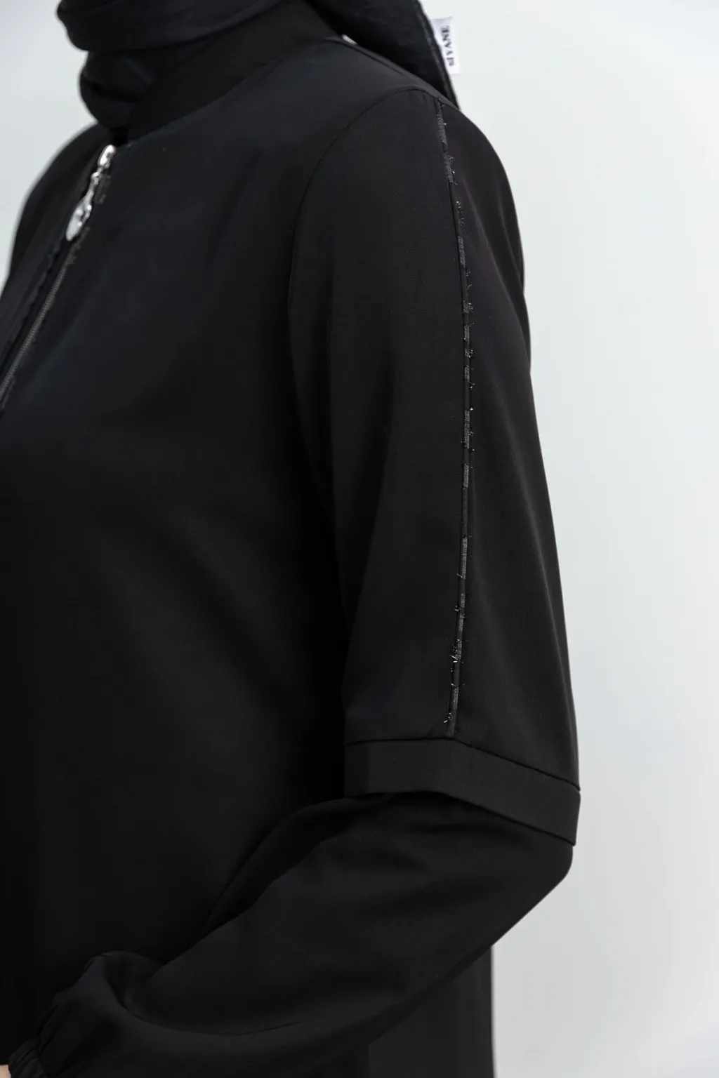 ÇIT ÇIT DETAYLI DİK YAKA SPOR FERACE - SİYAH - (Asorti: 46-52)