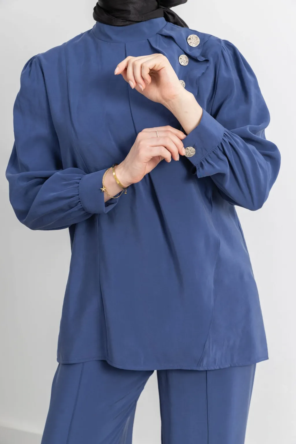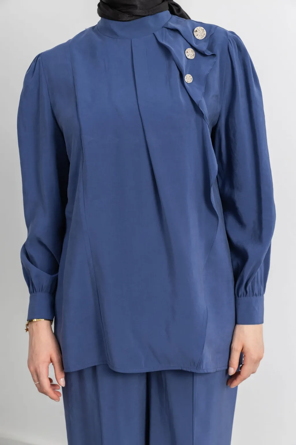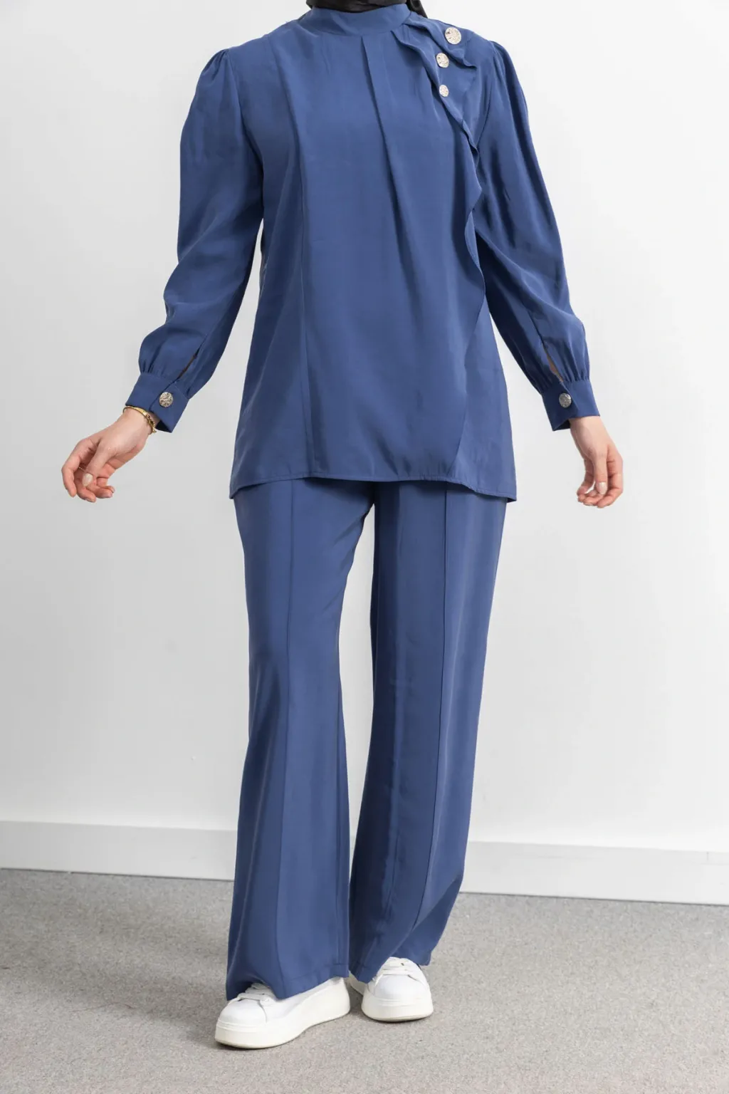 Letafet Önü Volan Detaylı Pantolonlu Takım - İndigo - (asorti: M-xxl)